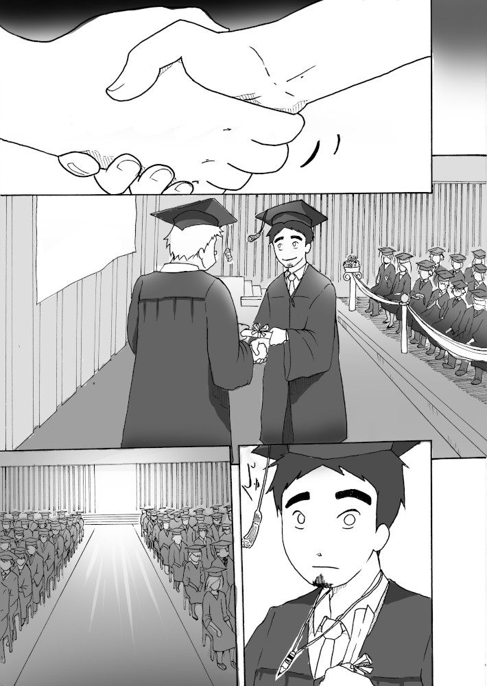 | “I liked the part when the protagonist was inspired to do something out of his boundaries and in turn becoming successful. I also like my first page aesthetically.” | |