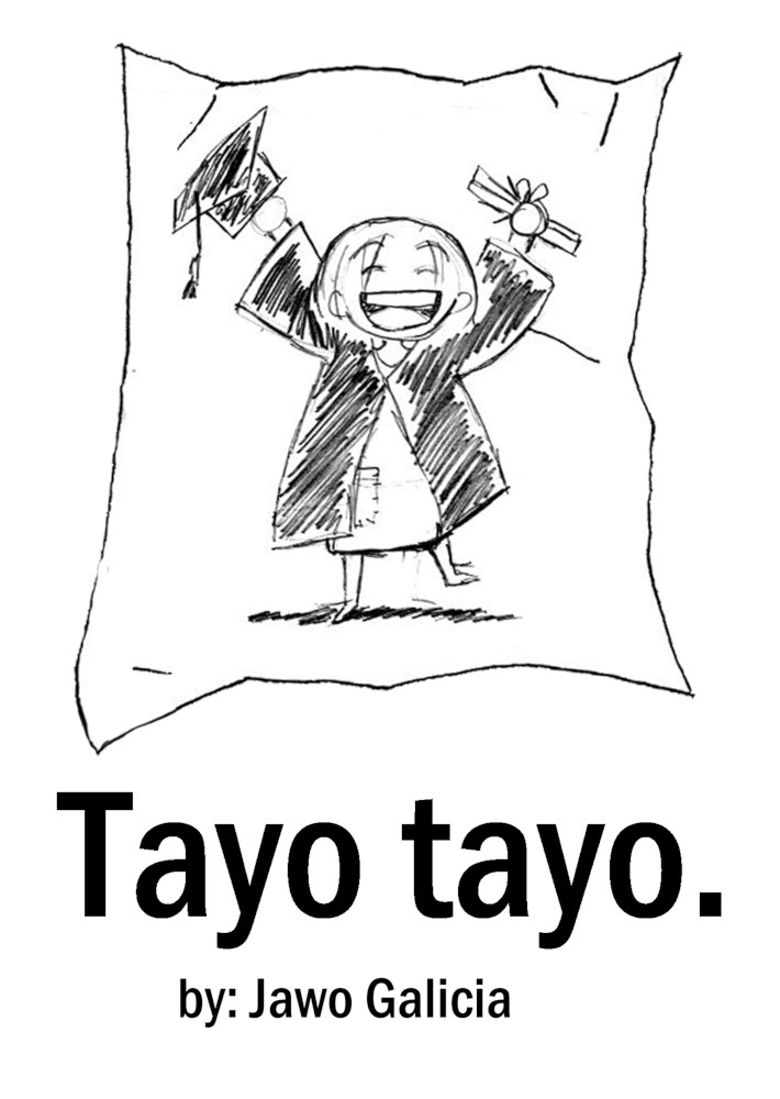 | “In our country, the word "tayo" has 2 definitions depending on its pronunciation. The first tayo would mean "to stand", and the second would mean " we". So basically the title means " let's stand". Tayo tayo took away every minute of my free time hahaha hope you like it.. I'm also a candidate for graduation this coming February. Hoping to march during the ceremony just like my protagonist.” | |