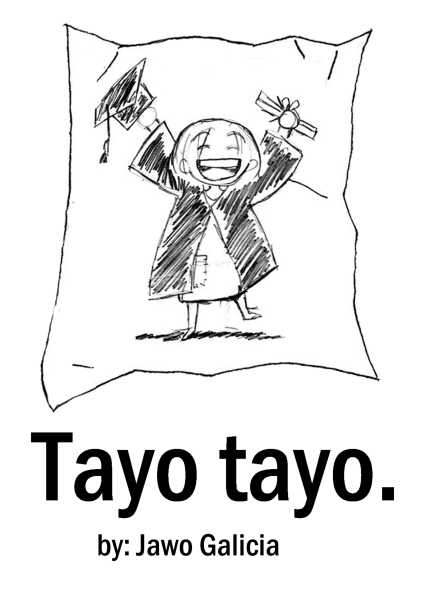 | “In our country, the word "tayo" has 2 definitions depending on its pronunciation. The first tayo would mean "to stand", and the second would mean " we". So basically the title means " let's stand". Tayo tayo took away every minute of my free time hahaha hope you like it.. I'm also a candidate for graduation this coming February. Hoping to march during the ceremony just like my protagonist.” | |
