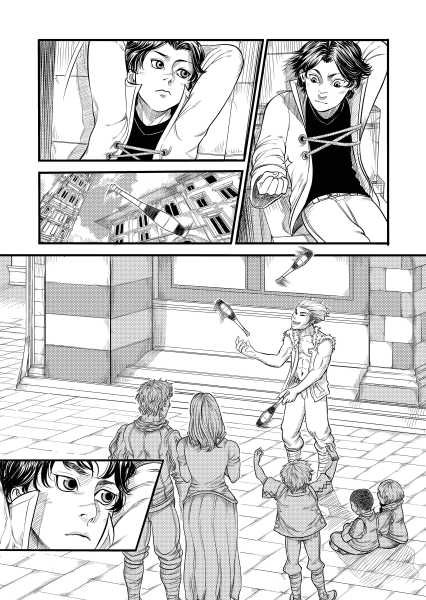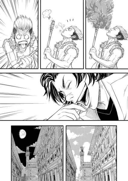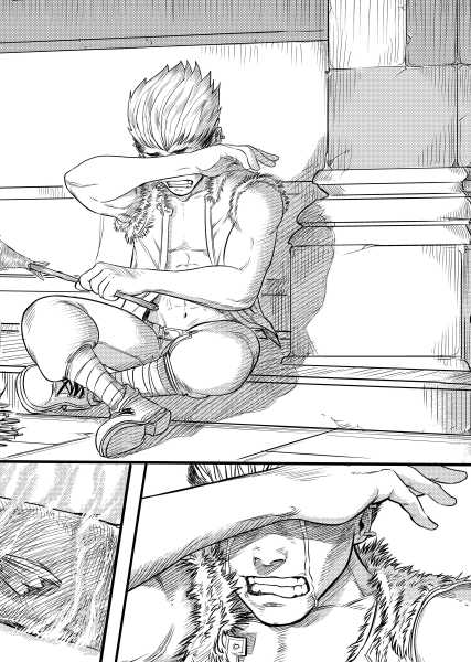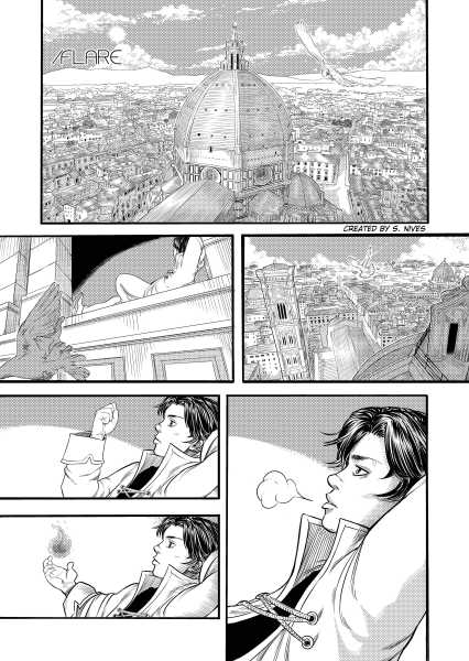 | “Since the “flare” was the most important part of the story, I found myself drawing it over and over again, so many times that I've lost count of it! In the end I was satisfied with the result, but it was a very tough fight!” | |
