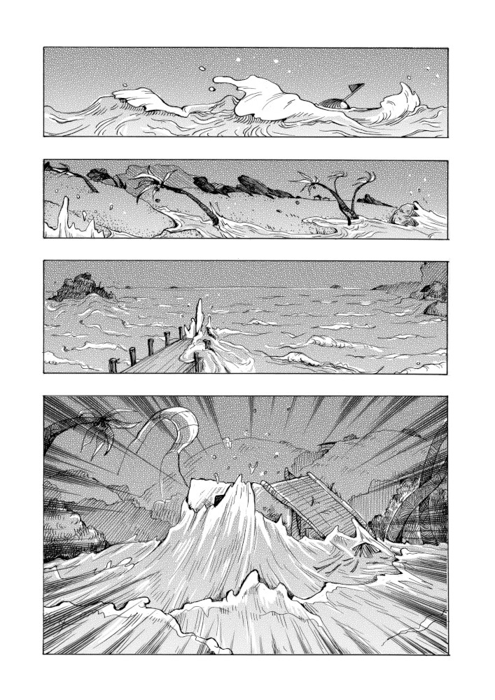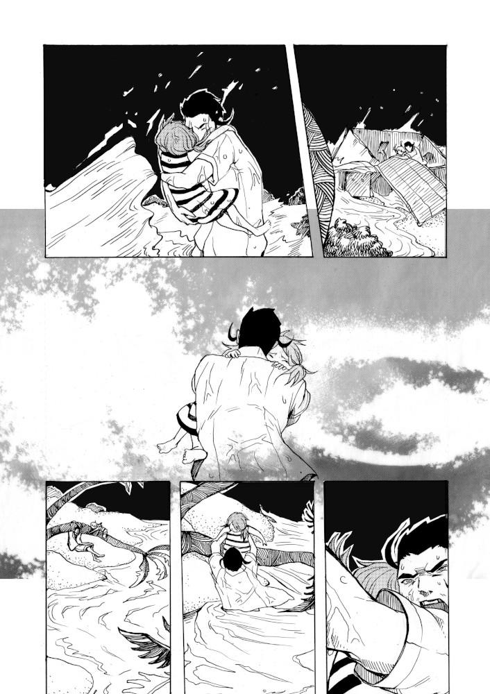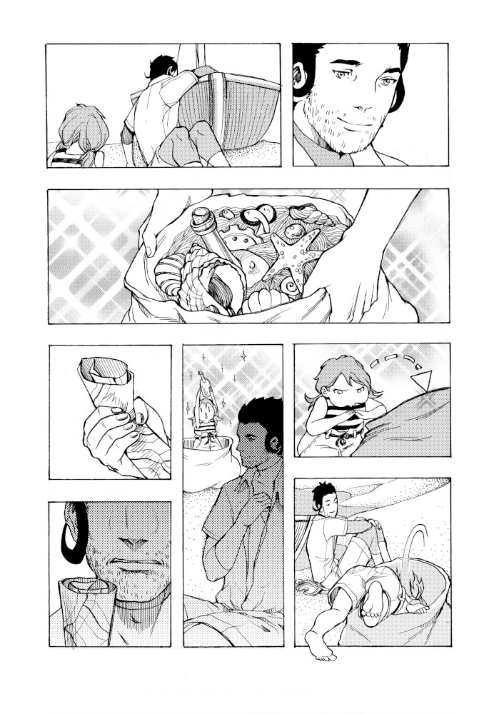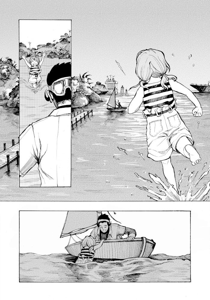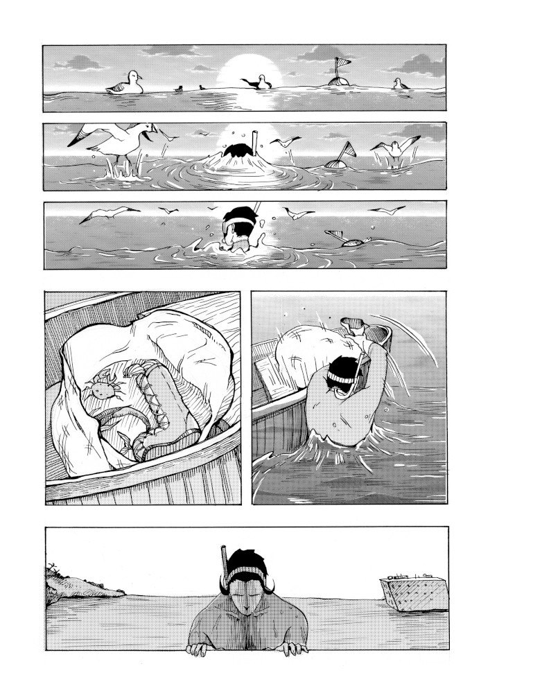 | “When father realizes that the sea also have a character. The sea brings despair or luck, it can take away, but it can also give. (last page, bow)” | |
