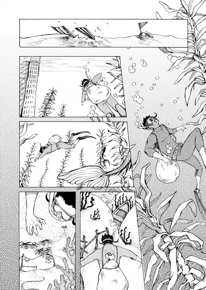 | “The story tells about a young reckless father, who one day left his job, wife and house to fulfill his biggest dream to explore the sea. However, the fate of treasure-hunter may not be as easy as he thought.” | |