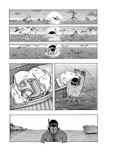 | “When father realizes that the sea also have a character. The sea brings despair or luck, it can take away, but it can also give. (last page, bow)” | |