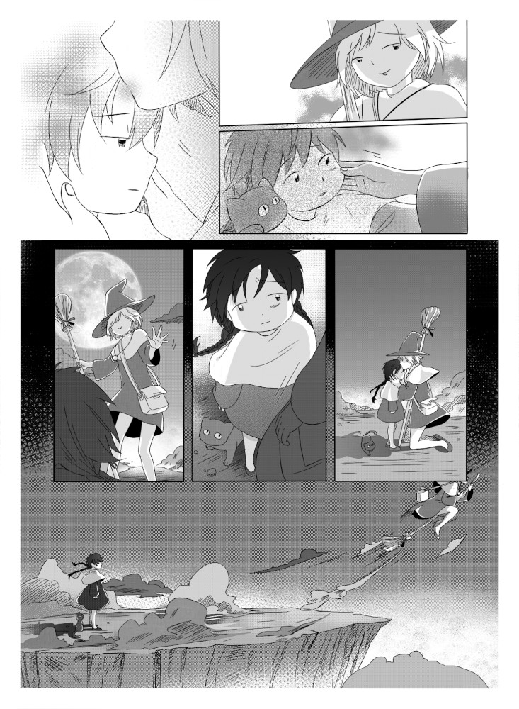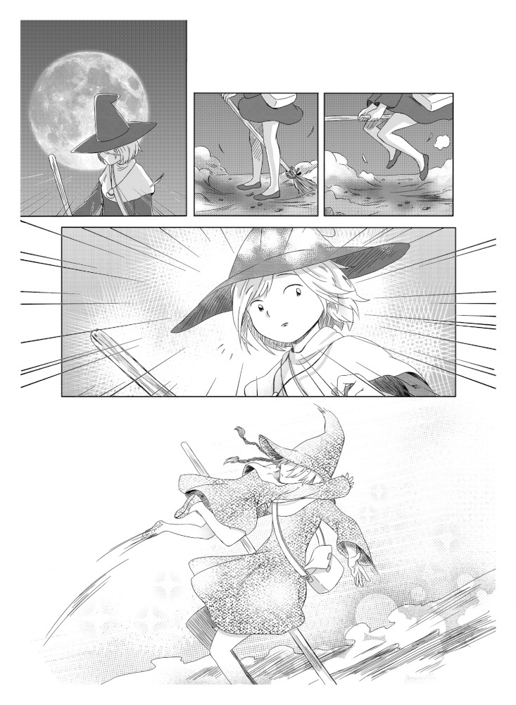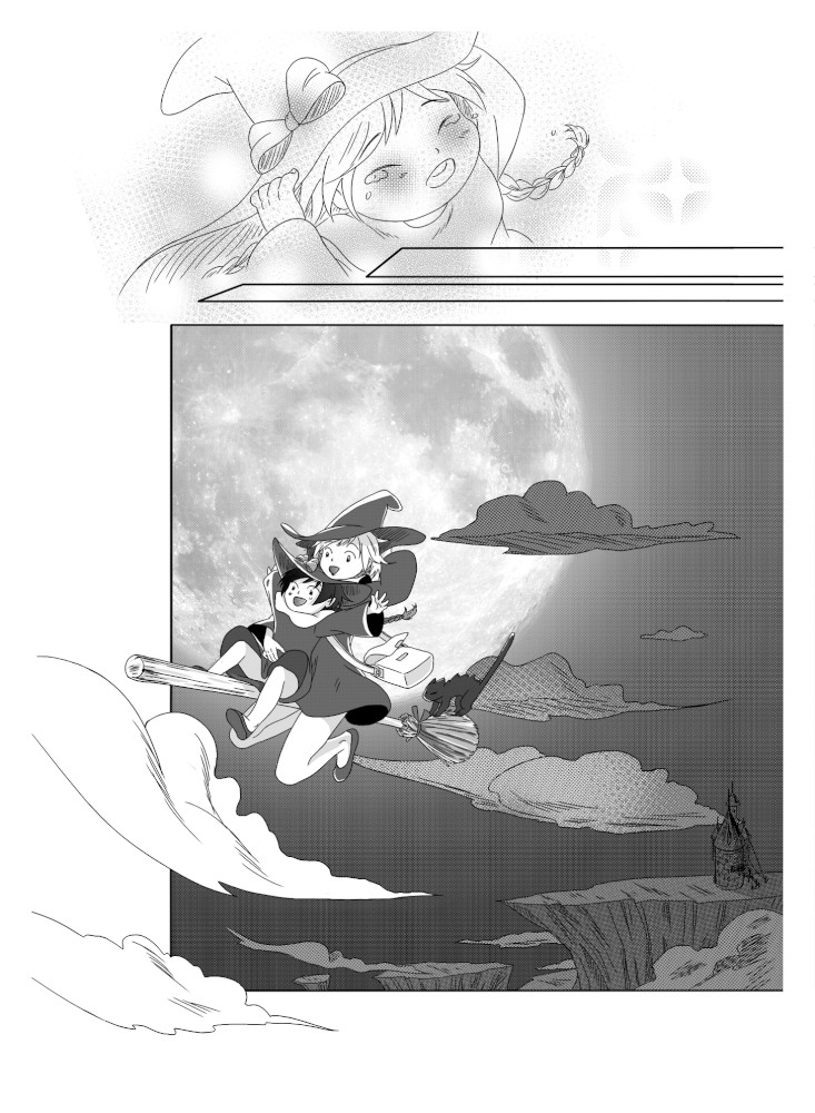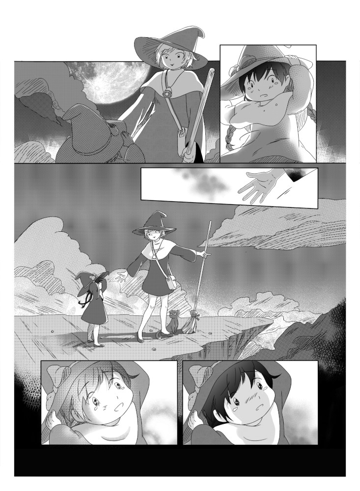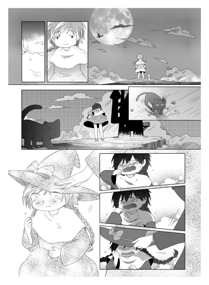 | “When the mother comes back and puts a witch hat on her daughter's head.” | |
