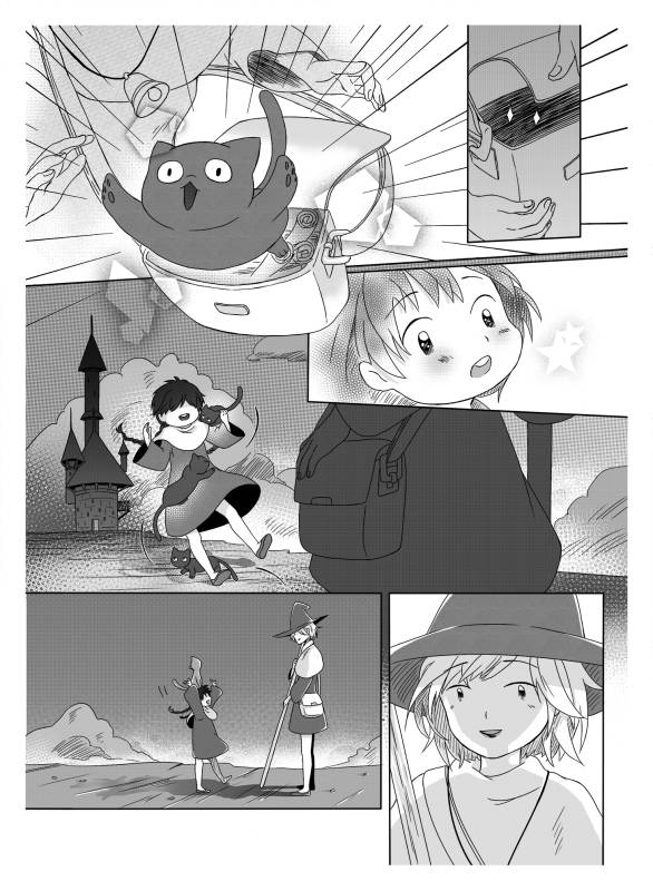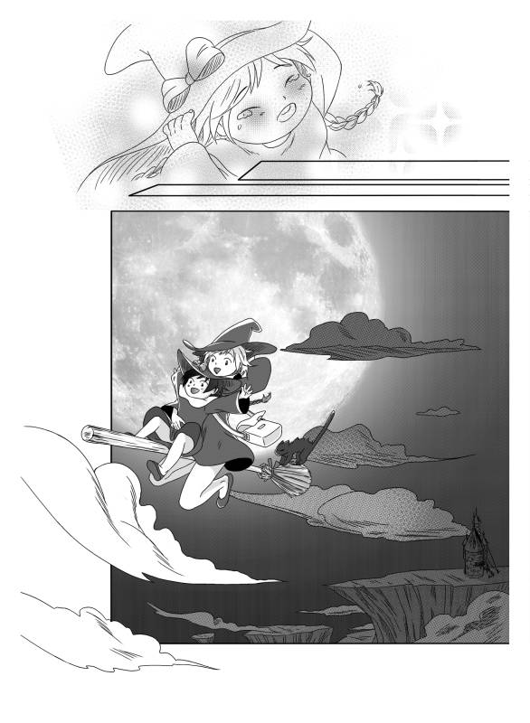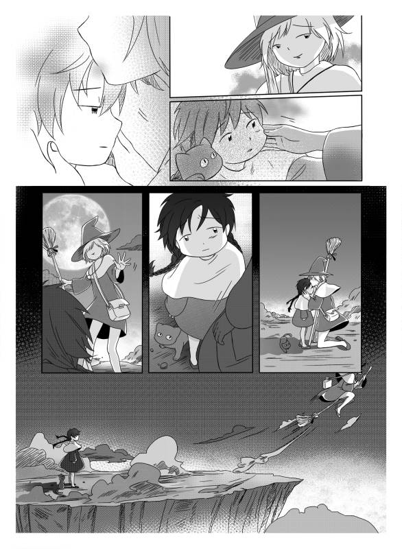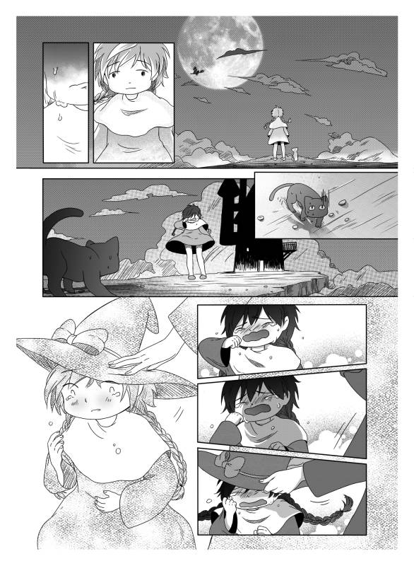| “When the mother comes back and puts a witch hat on her daughter's head.” | |