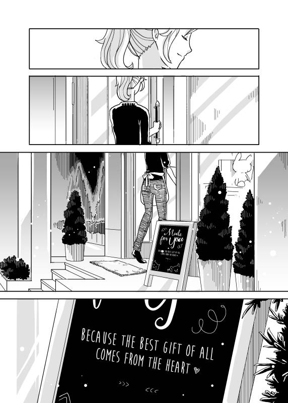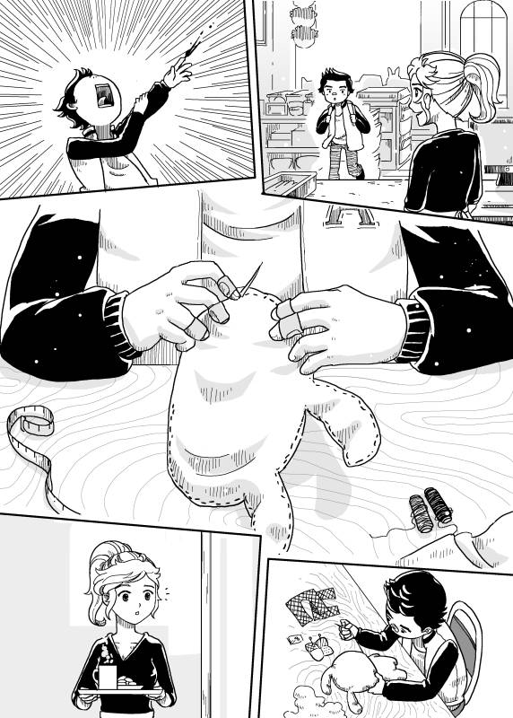 “There are two kind of gift that was shown in this story. The first was when the boy made the plushie for his little sister. The second was when the shopkeeper help the boy fixed the damaged plushie. Gift can take many form to make people smile.”