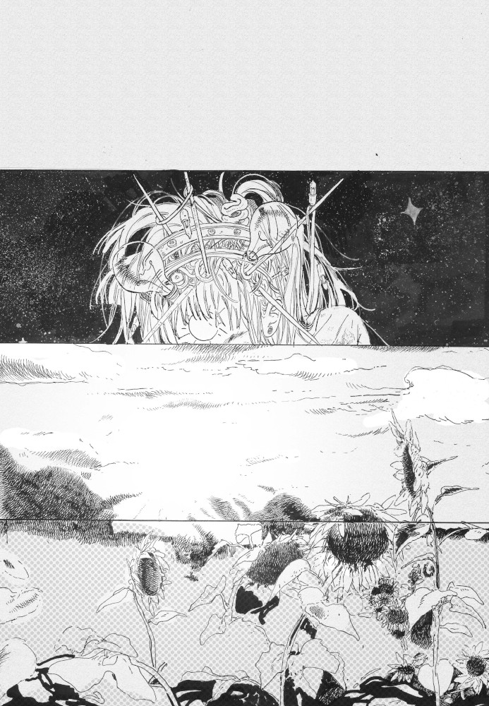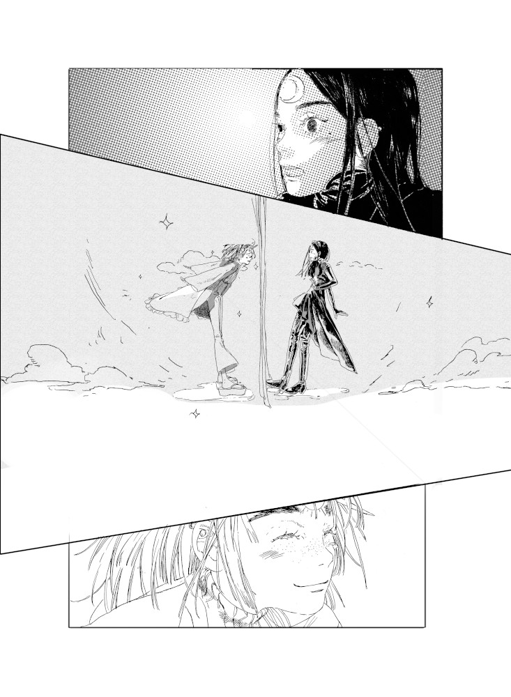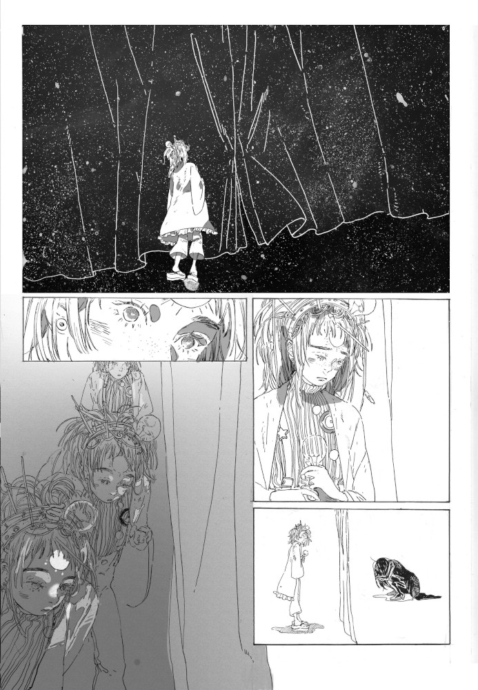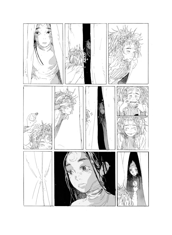 “In the third page when the sun was dancing .. I tried my best to show how happy she was Im really happy that I attempted drawing it ..”