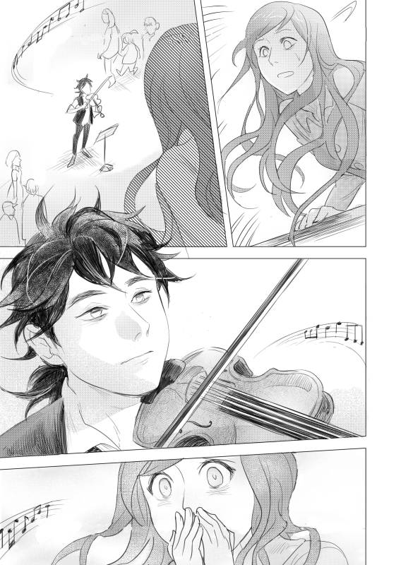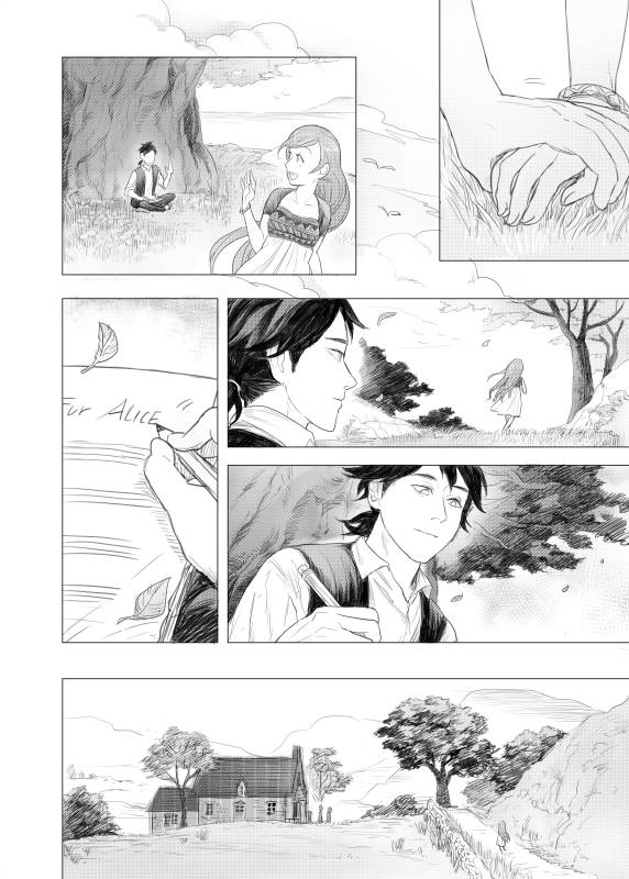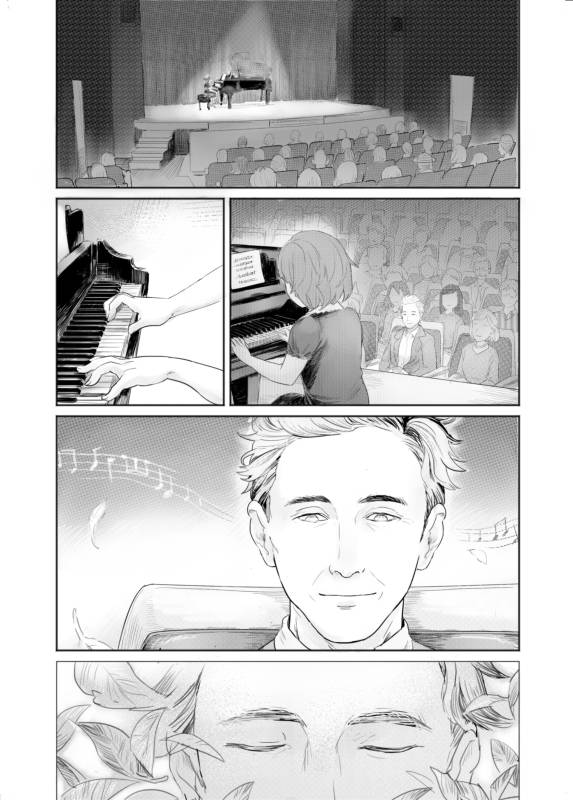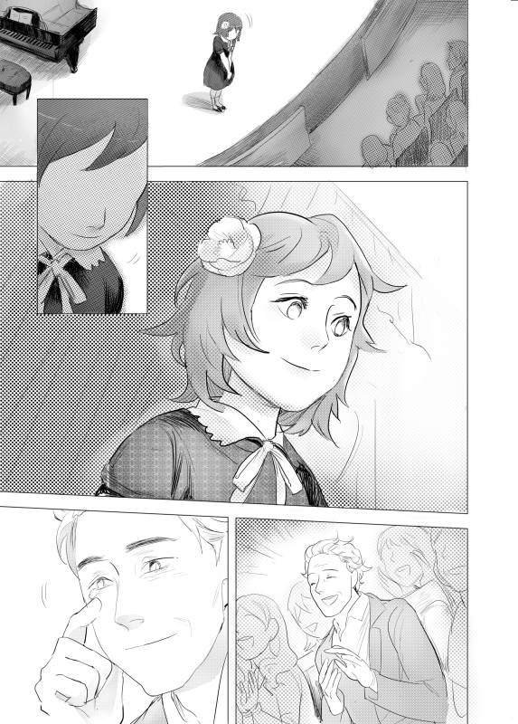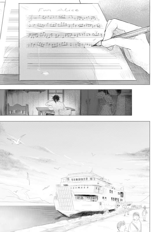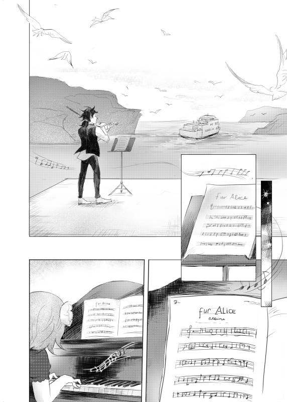 | “Well, this manga is inspired by the real Fur Elise. When I played the piano I found the melody very charming and sad. Then start to wonder about the background of the story, since I didn't find it, I got an idea to make a fictional background of the song, but with a slightly different title as Fur Alice.” | |