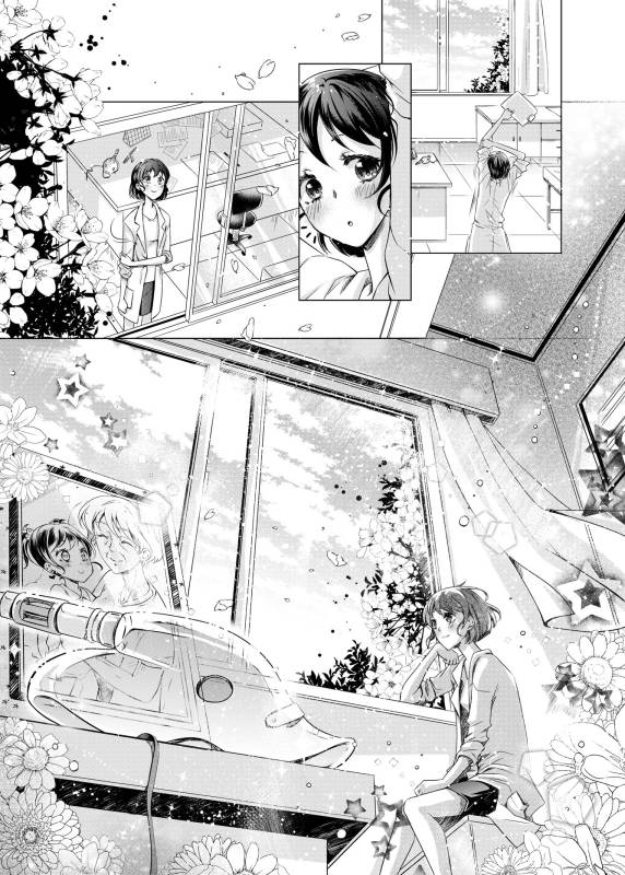 “When the little girl feels like her grandma put a message in her "gift" and decides to use it as a windrose, helping her to follow her professional path to help old people as she would love to do with her grandma.”