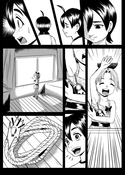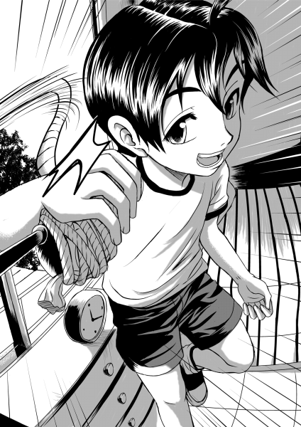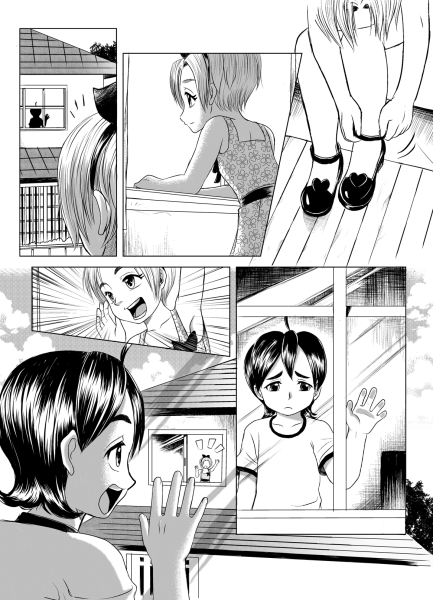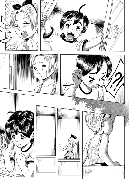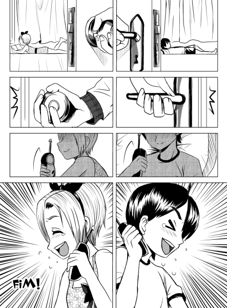 | “The moment the girl has the idea of tying the Walk Talk On a rope to throw to the boy across the street.” | |