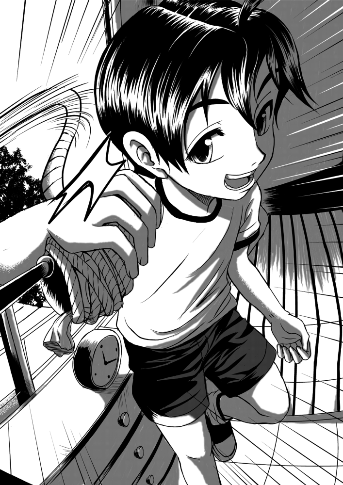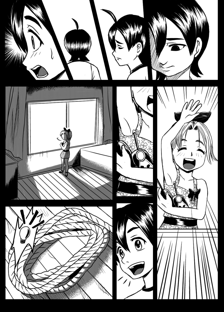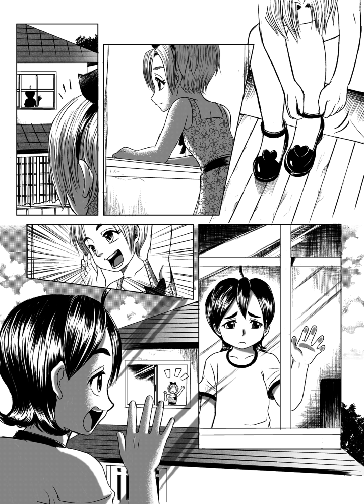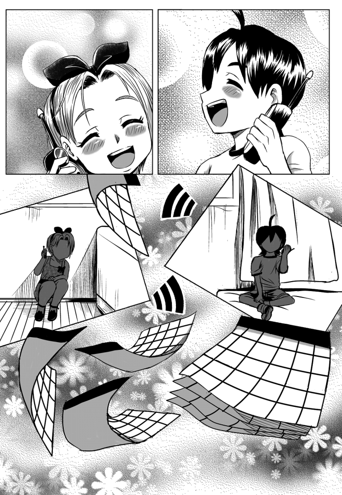 | “The moment the girl has the idea of tying the Walk Talk On a rope to throw to the boy across the street.” | |