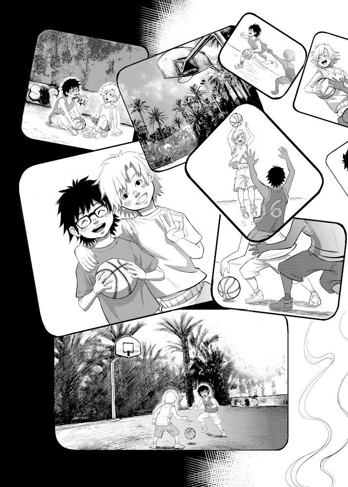 “I think this story is a mixture of many things that I love: friendship, basketball, promises, dreams and goals to achieve !. Drawing this manga has been fun and rewarding, I hope you enjoy it as much as I have.”
