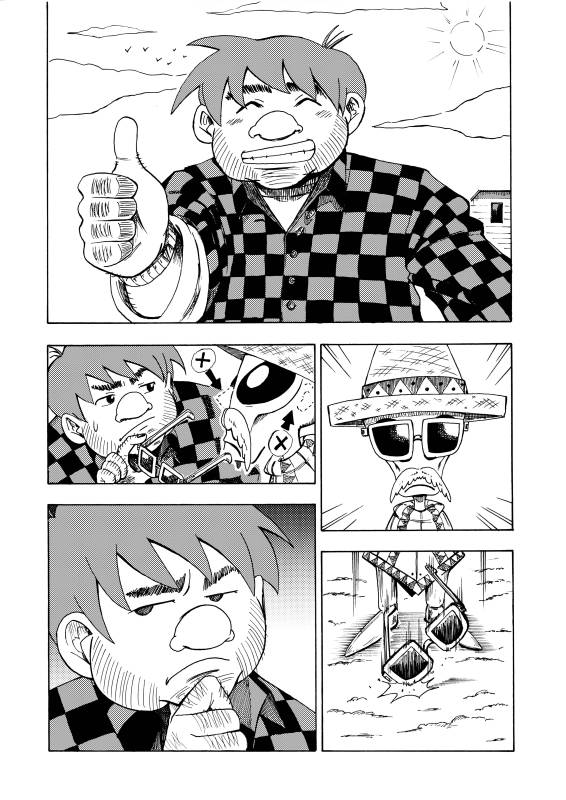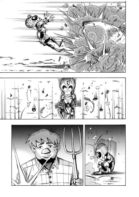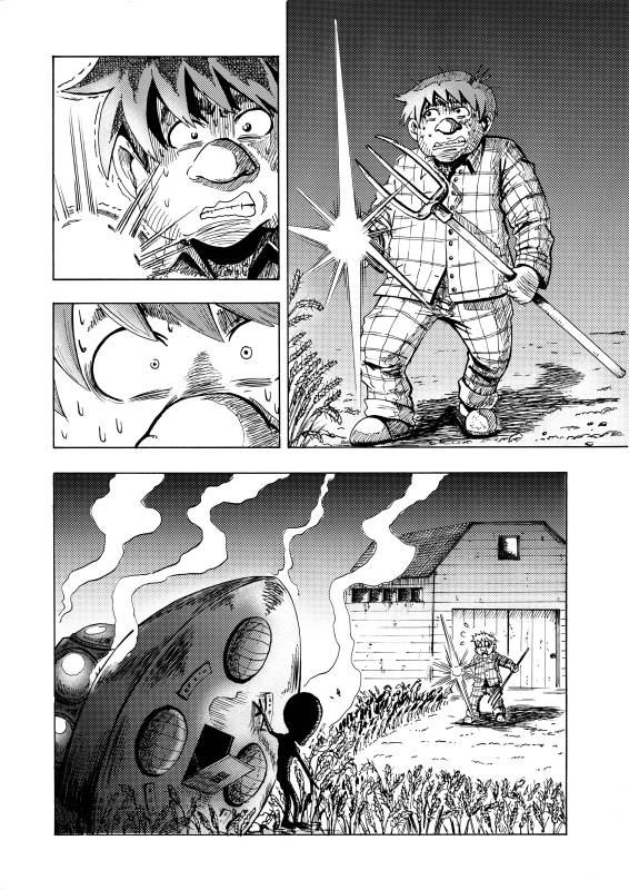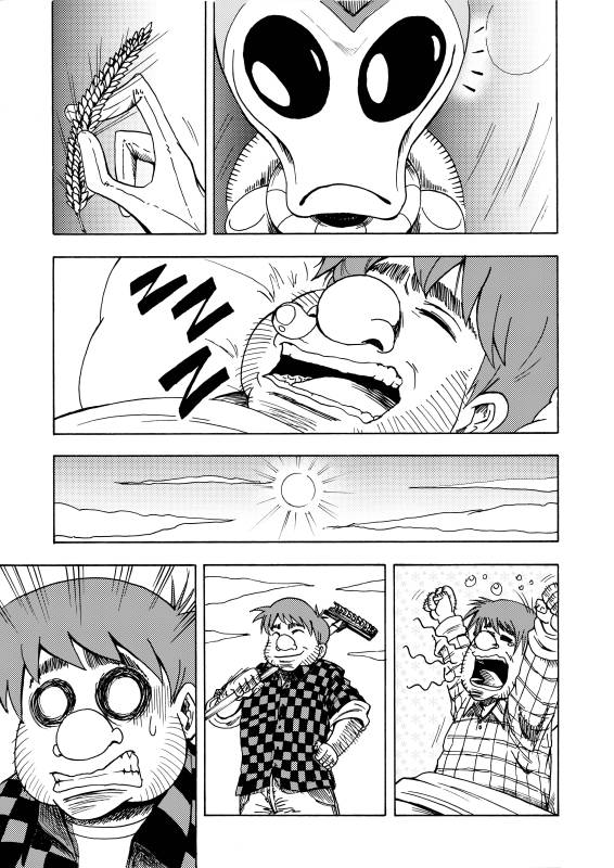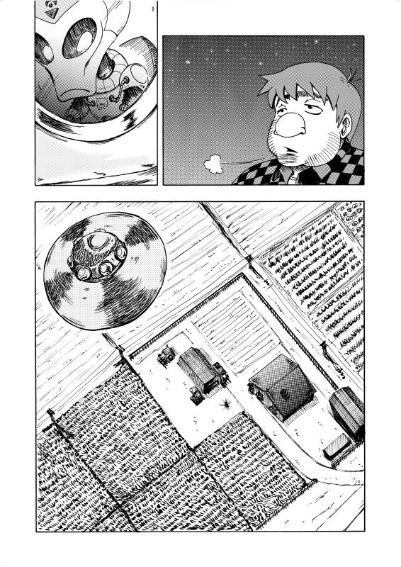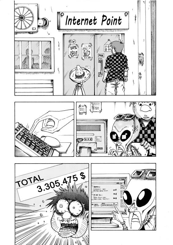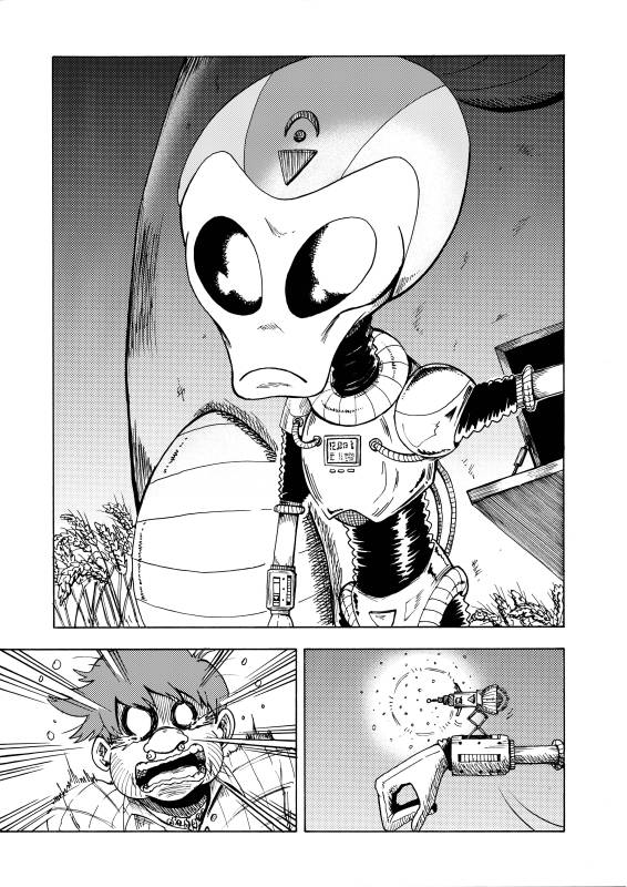 “This time I decided for a "gag manga". I like to draw funny stories, because for me the fun is the most important thing in a manga. :) For the title I get the title of a famous American TV series about aliens making a word pun. :P”