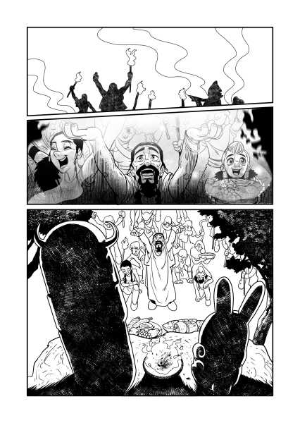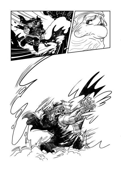 | “When our fat god faces the invaders alone to protect his best friend” | |