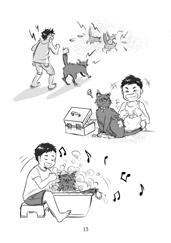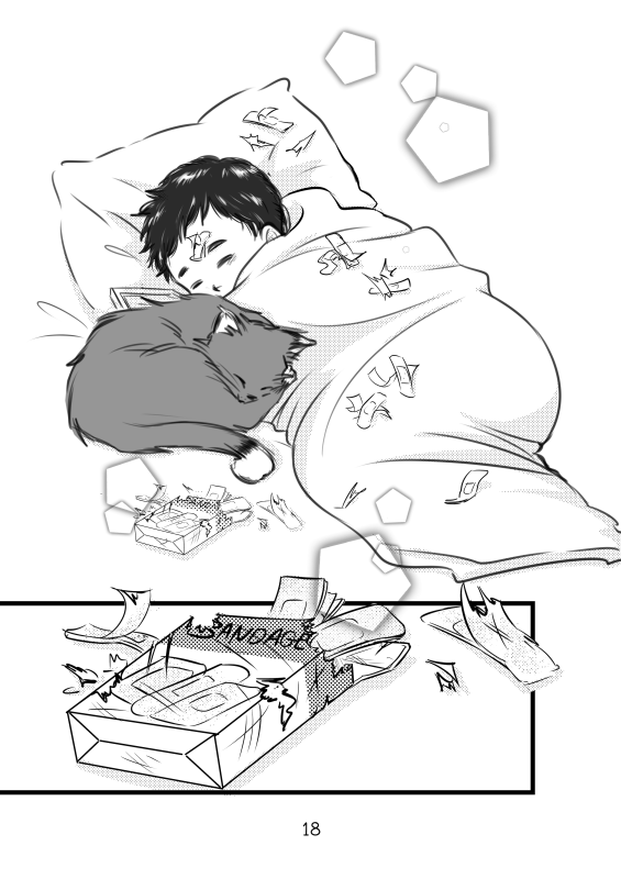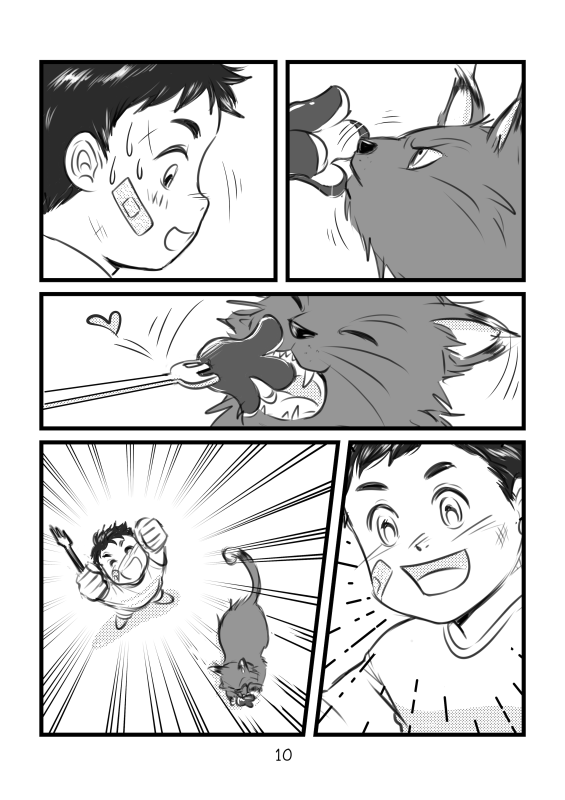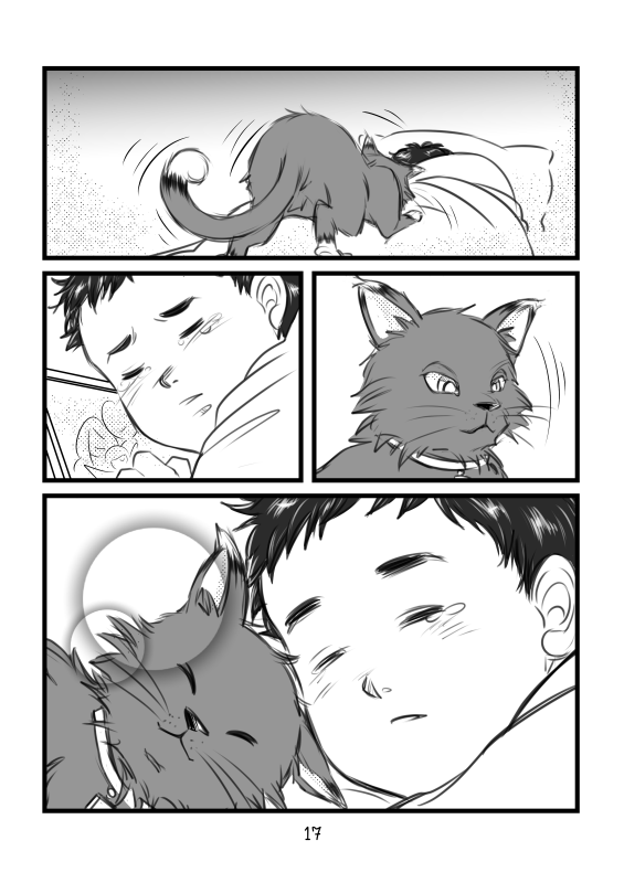 “One father-less boy and one stray cat met in a less than friendly encounter (from the cat's part anyway). However once the cat opened up to the boy they started to bond, and their friendship grew stronger each day. But there will always be an empty place in the boy's heart where his father used to be, and it hurts the boy so. The cat, lacking the ability to communicate with words, used the only 'tool' it knows to let the boy understands how much it cares.”