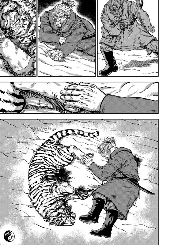 | “I think the best part of the manga is when the blind tiger senses the japanese and tries to warn the russian soldier with a roar. But he can't hear due to the wounds that made him deaf. So the tiger decides to help the soldier.” | |
