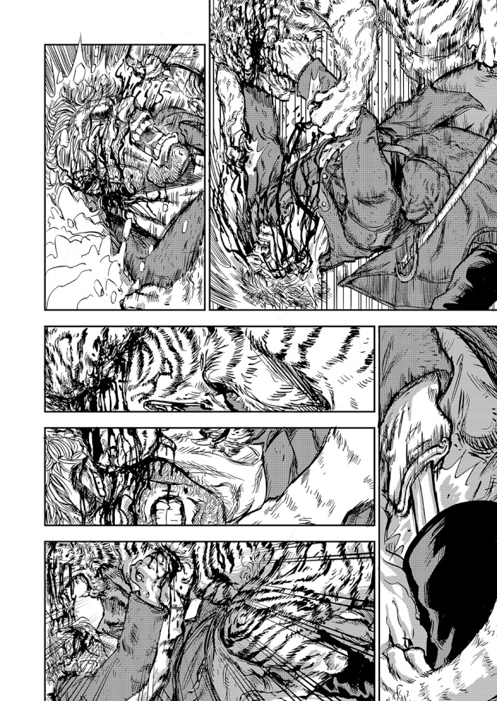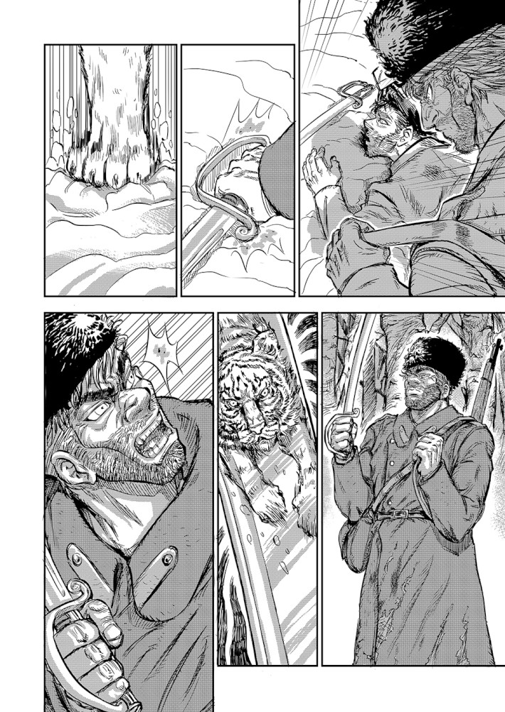 | “I think the best part of the manga is when the blind tiger senses the japanese and tries to warn the russian soldier with a roar. But he can't hear due to the wounds that made him deaf. So the tiger decides to help the soldier.” | |