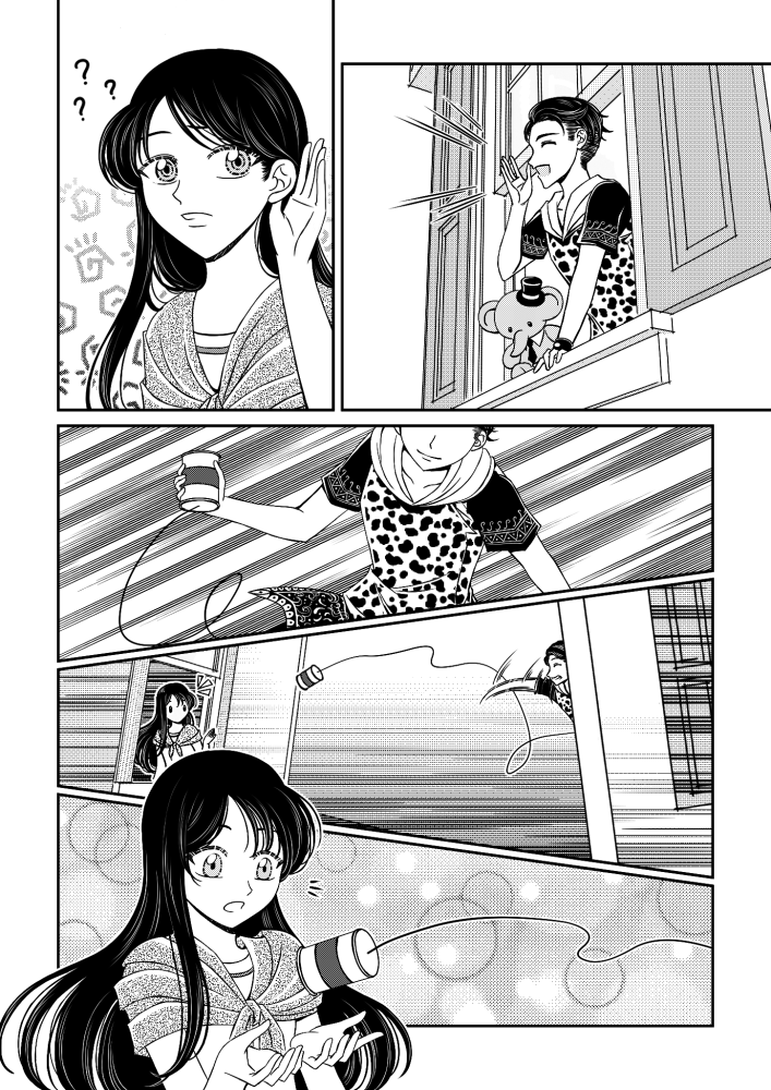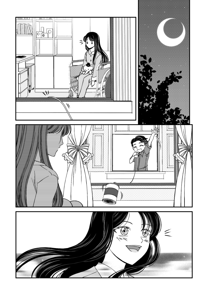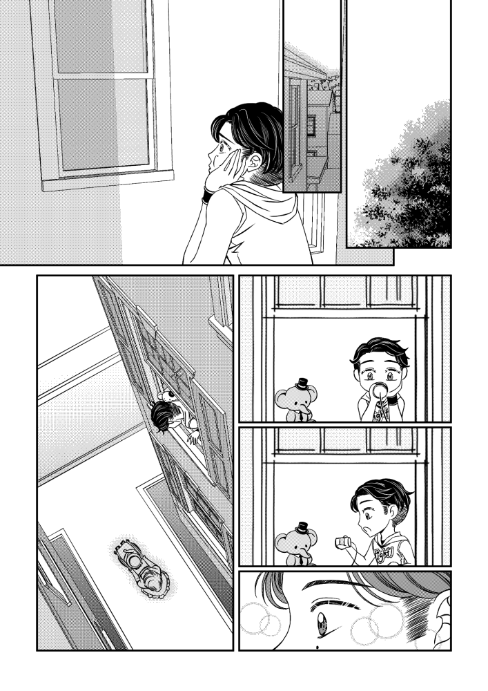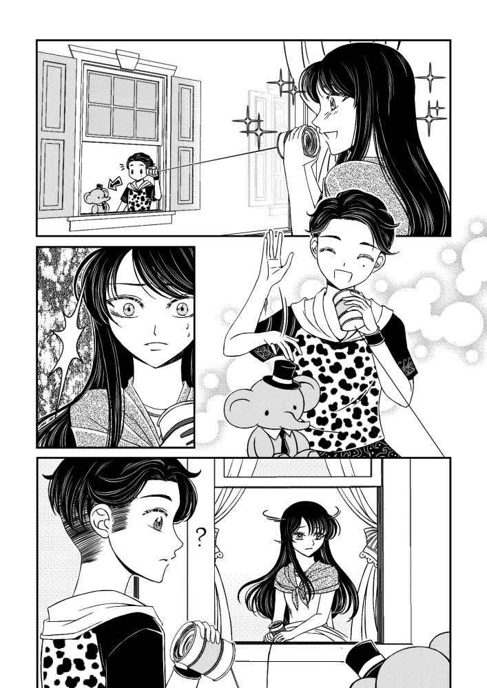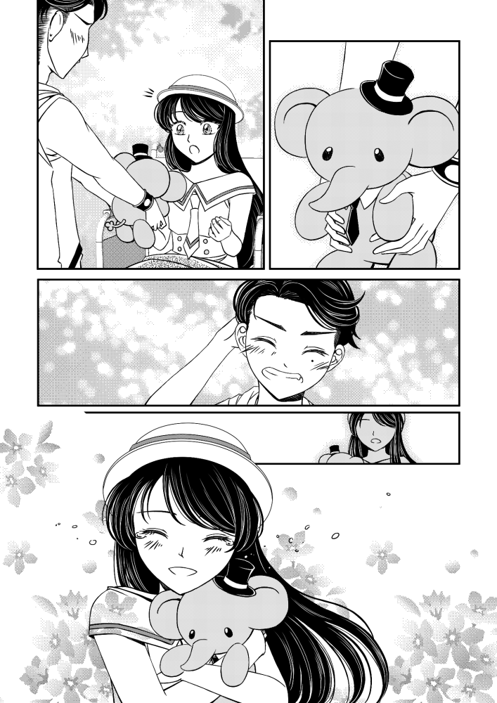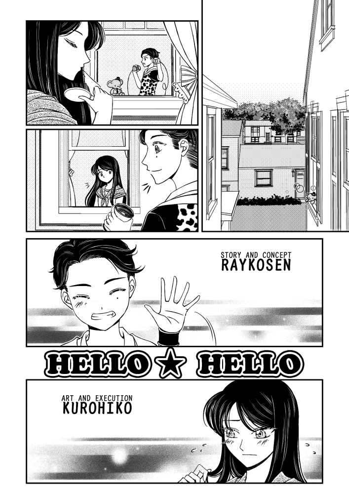 | “In Hello★Hello, we secretly named the characters as Shizuka (Girl) and Taro (Boy). So that when we are talking about the flow of the story together with my artist, we can call them as if they are existing or our friends. One of the best parts are, the revelation that Shizuka is crippled. It was so dramatic that we had to feel it while reading/looking at the page. Also, the scene where Shizuka smiled in receiving the elephant stuffed toy from Taro. It was so magical that I am so affected with the smile. It is also our favorite that Taro doesn't care about Shizuka's condition and just wanted to be her friend. Kids nowadays can be over sensitive or doesn't care at all.” | |