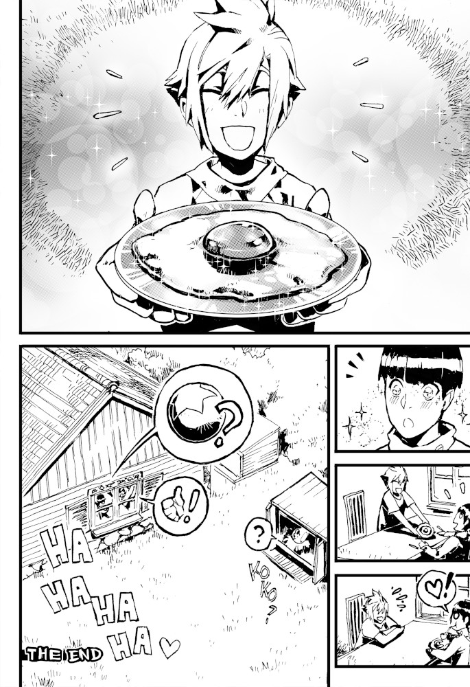| “It was my first time drawing a comic from right to left, and so I simply sketched it left to right, flipped it, and then drew just like that while looking at the sketch. I hope it will be clear enough what is even happening in there.” | |