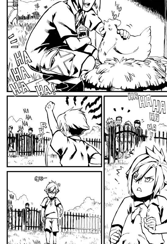 | “The element of surprise, I think? I wanted to make the reader think that the main characters would be the chicken and it's owner at first. While it really was the boy who didn't quite fit in with the group of bullies.” | |