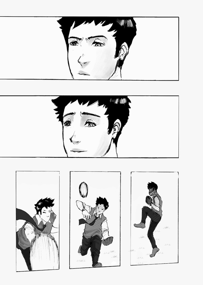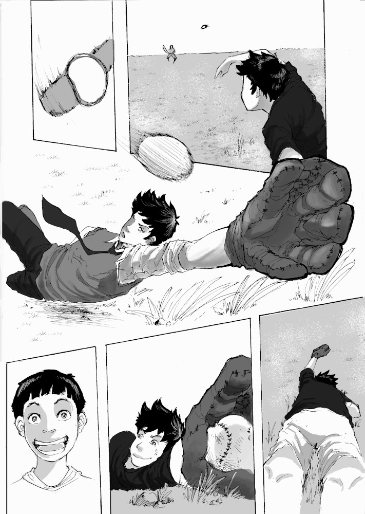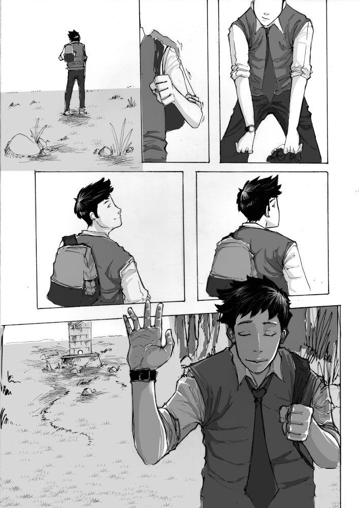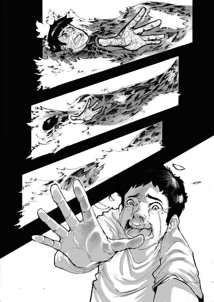 | “We think that the best part of this manga is when it entered the climax scene, the spread page at page 10-11. We totally put a lot of effort and so many redos on that spread page, so the manga can deliver the emotions of the story.” | |