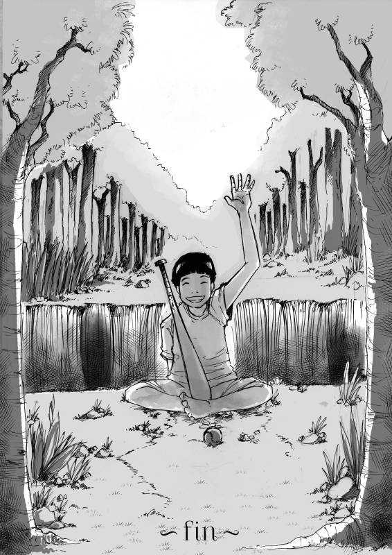 | “We think that the best part of this manga is when it entered the climax scene, the spread page at page 10-11. We totally put a lot of effort and so many redos on that spread page, so the manga can deliver the emotions of the story.” | |
