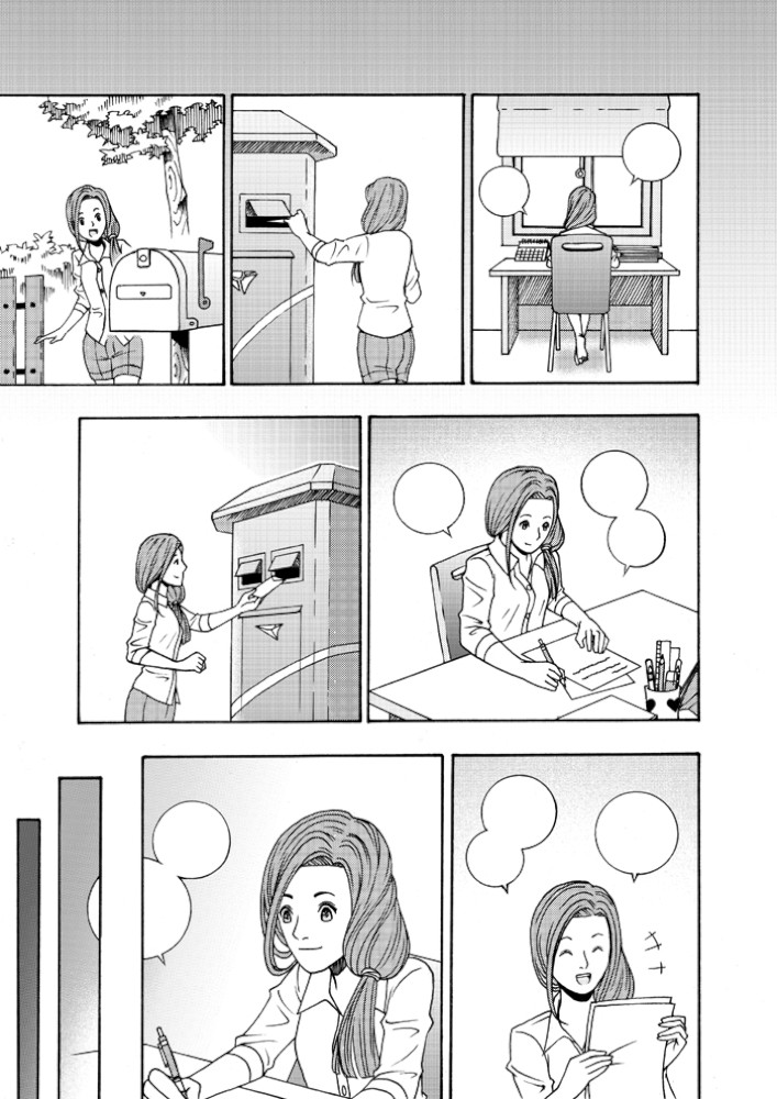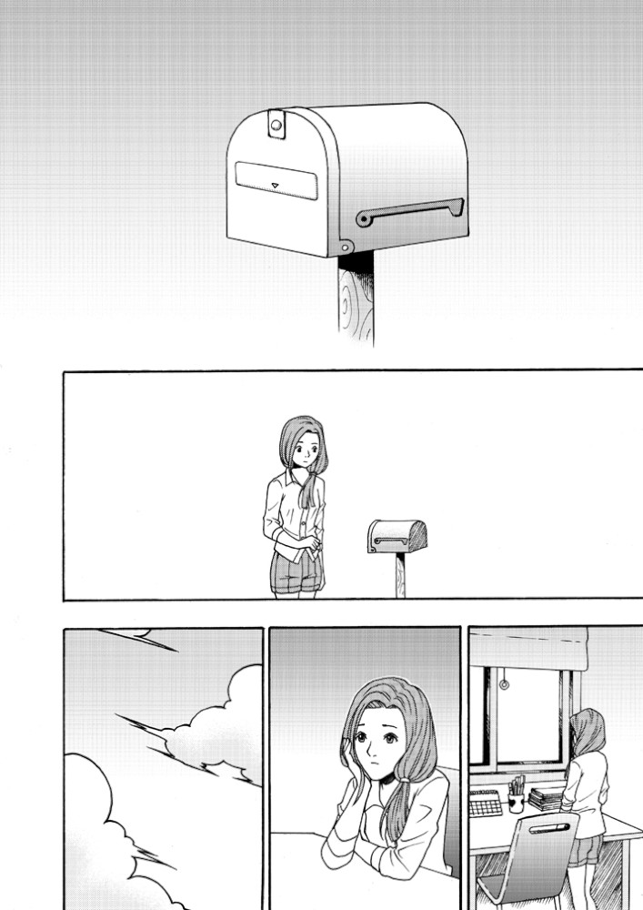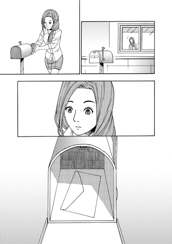 | “A girl who find her friend with the letter which be send from her friend.” | |