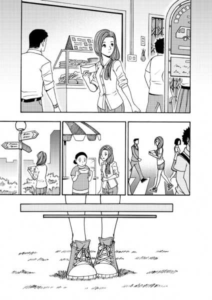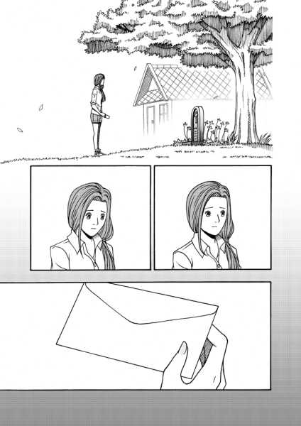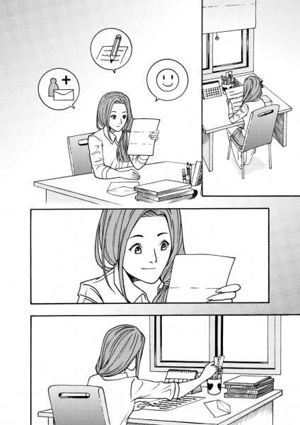 | “A girl who find her friend with the letter which be send from her friend.” | |