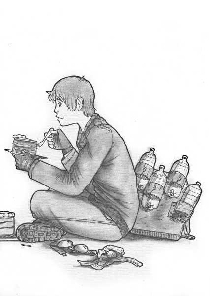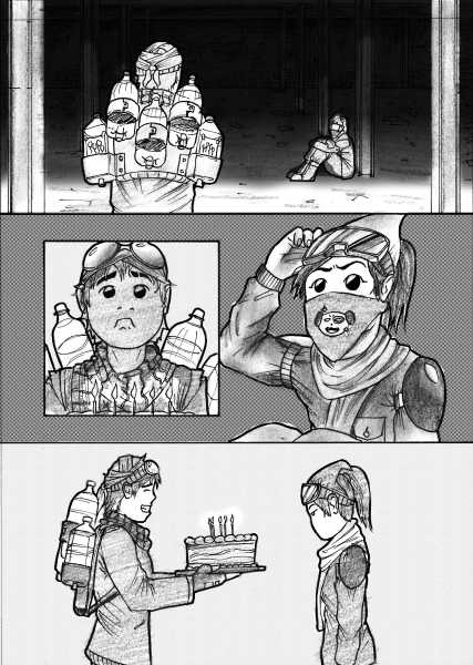 | “I was thinking of drawing something unique for this round but sadly nothing came to mind until the last few weeks when woke up in the middle of the night with this idea in mind. Hopefully the readers would like this weird story that literally started as a dream :)” | |