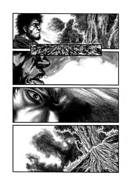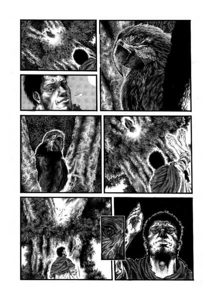 | “This manga asked me almost 2 working months Pantheistic and Indian ideas incited me to draw about this. The nature is very important for me, i think she hel a man a lot for his spiritual development.” | |