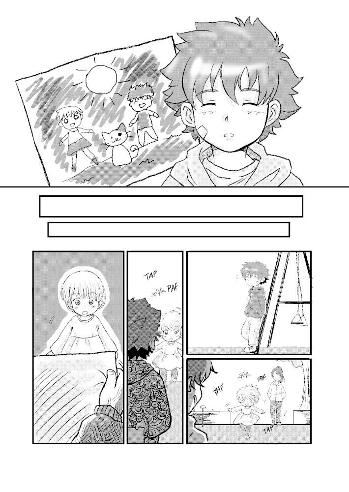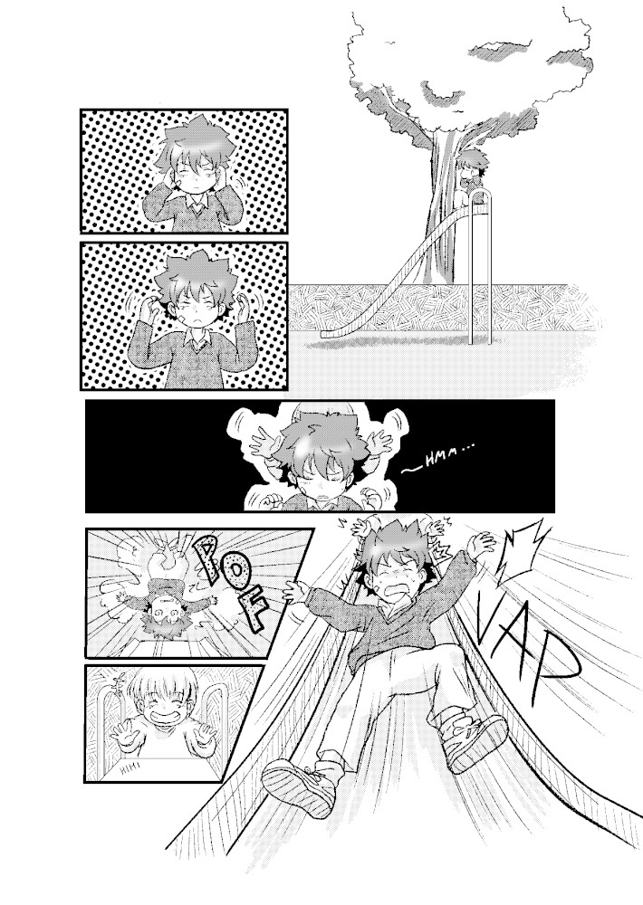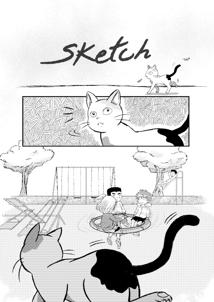 “Sketch teve como cenário um parquinho do lugar onde eu morava na infância, e até hoje me surpreendo como as crianças conseguem se tornar amigas facilmente de outras crianças por tão pouco. Nesta história, usei como forma de comunicação o próprio desenho, que independente do idioma, faz-se entender mais claramente do que com as palavras. Sketch had the background of a playground from where I lived in childhood, and still surprises me how children can become friends easily from other children for so little. In this story, used as communication design itself, that regardless of the language, the more clearly it is understood than words.”