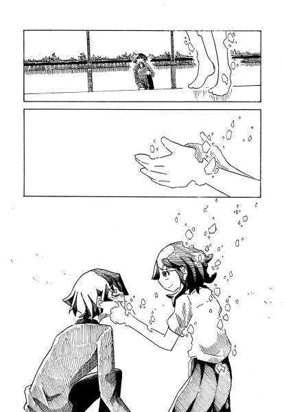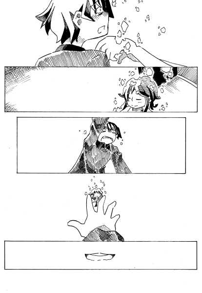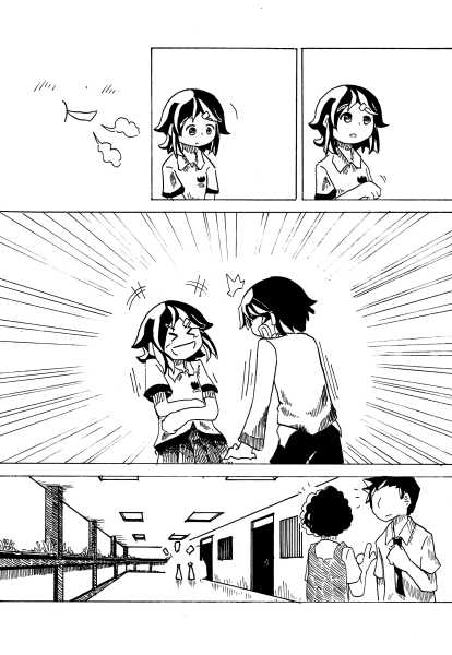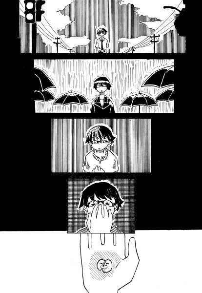 “the girl who always smiling and always tell her friend (the boy) to smile by giving smile sticker, can't hold her sadness and cried when she disappear as she told the boy to smile for the last time”