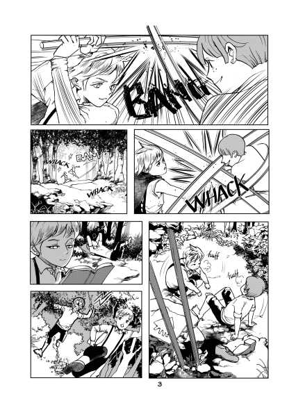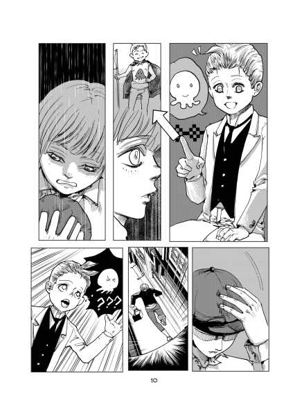 | “The part which I enjoyed drawing the most is the part in which Squid did try his best to look for Octopus on his own and recommunicate with his friend even he's clumsy with word, trembling with anger and fear and had to utilize the sword instead.” | |