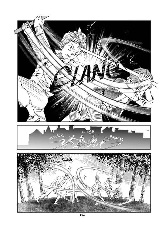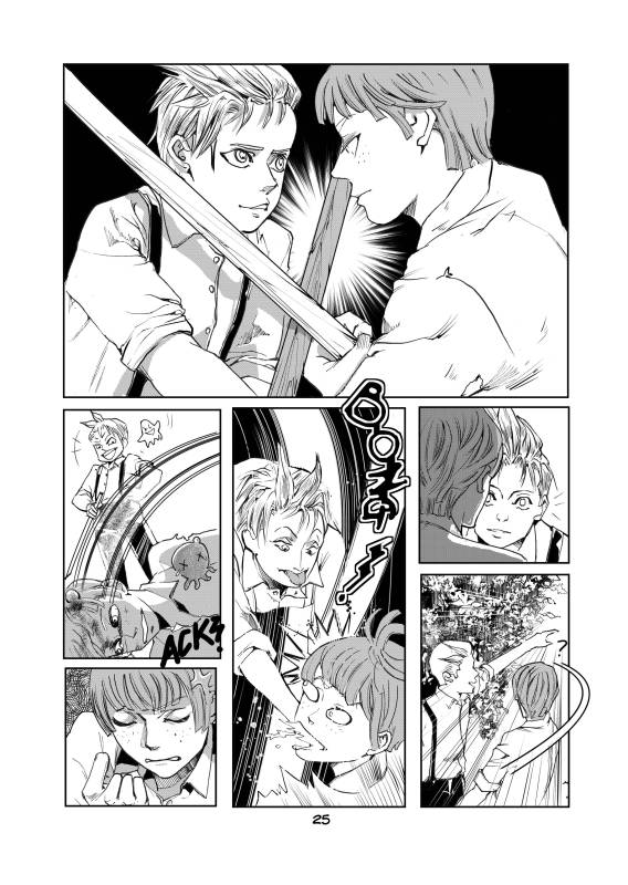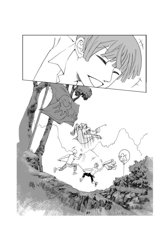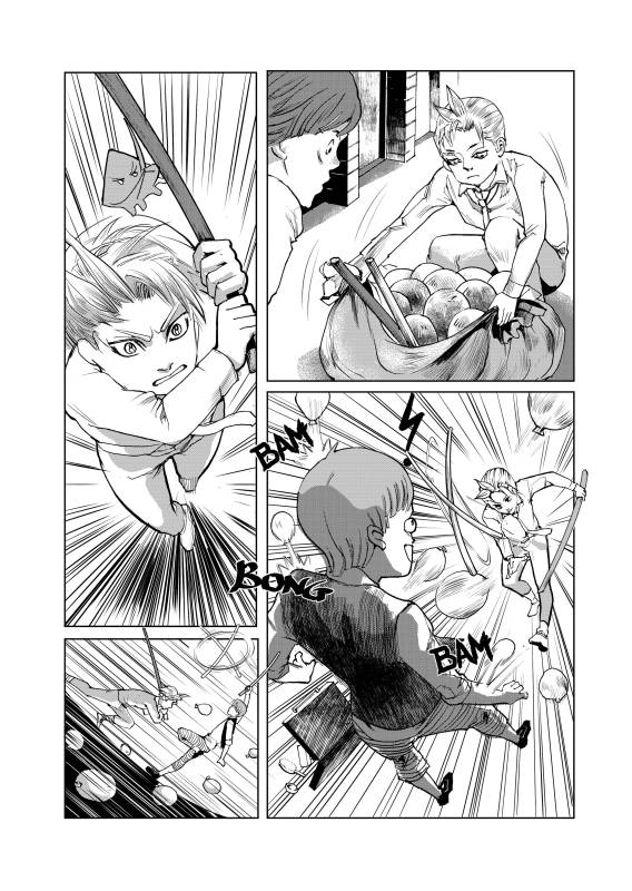 “The part which I enjoyed drawing the most is the part in which Squid did try his best to look for Octopus on his own and recommunicate with his friend even he's clumsy with word, trembling with anger and fear and had to utilize the sword instead.”