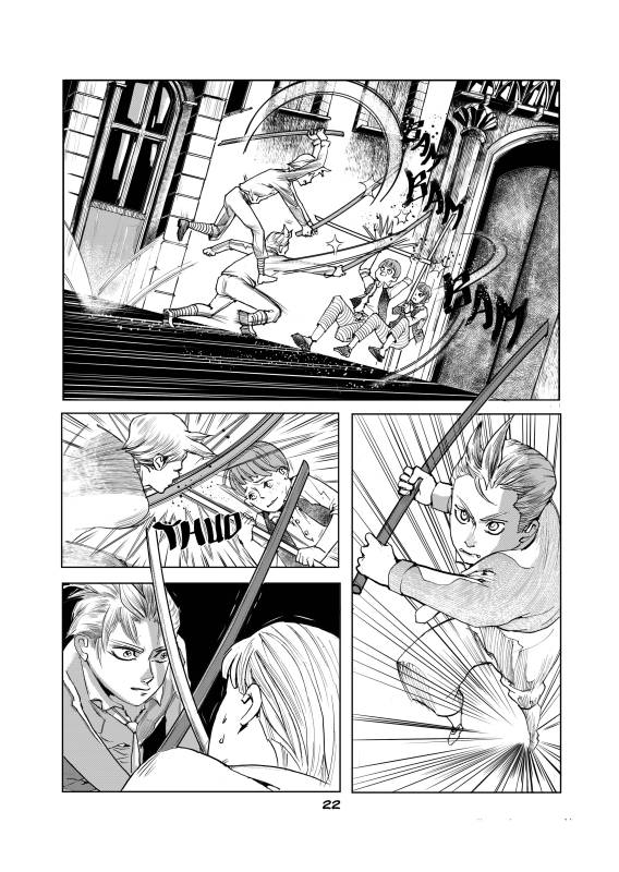 | “The part which I enjoyed drawing the most is the part in which Squid did try his best to look for Octopus on his own and recommunicate with his friend even he's clumsy with word, trembling with anger and fear and had to utilize the sword instead.” | |
