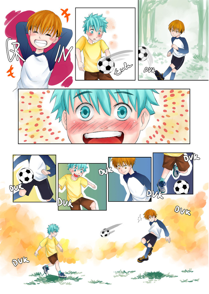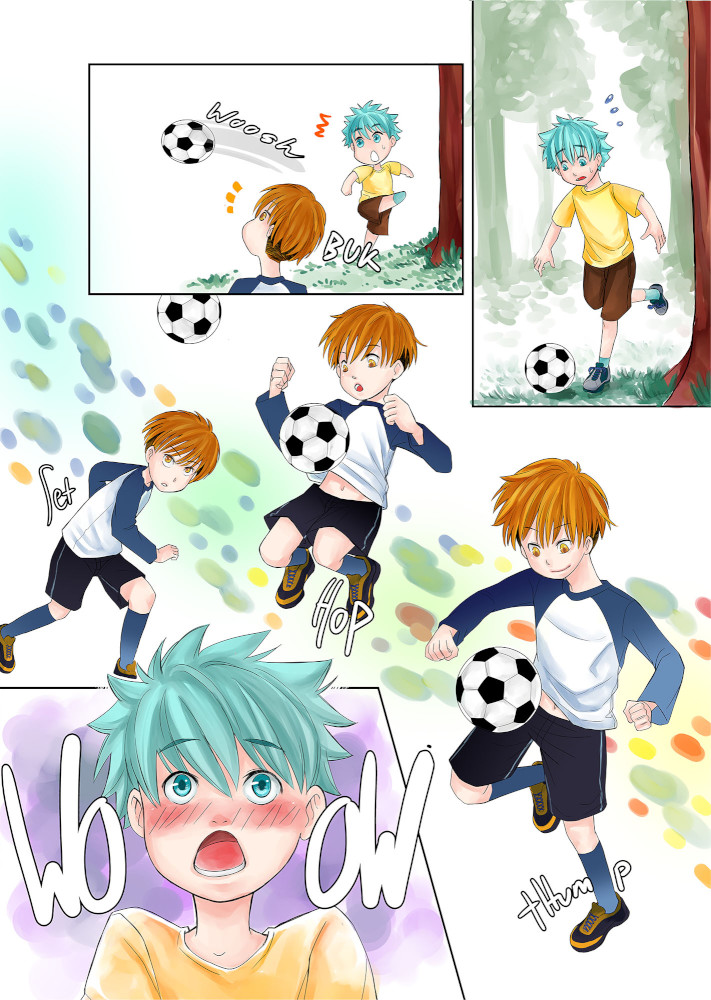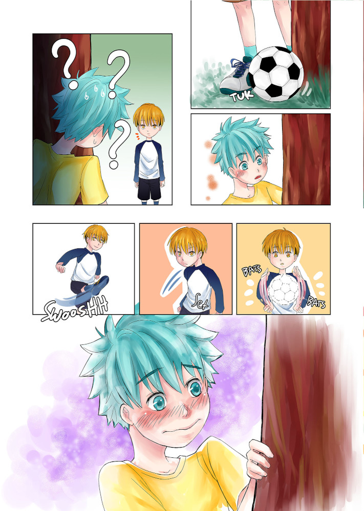 | “I like page 3, when the boy took the stray ball effortlessly and the other boy was struck in awe.” | |