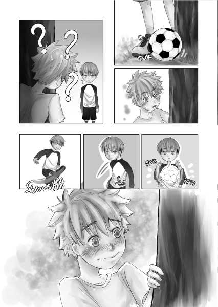 | “I like page 3, when the boy took the stray ball effortlessly and the other boy was struck in awe.” | |