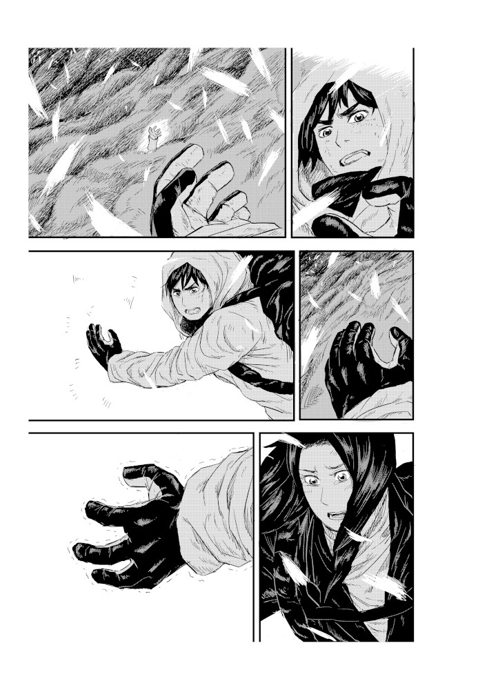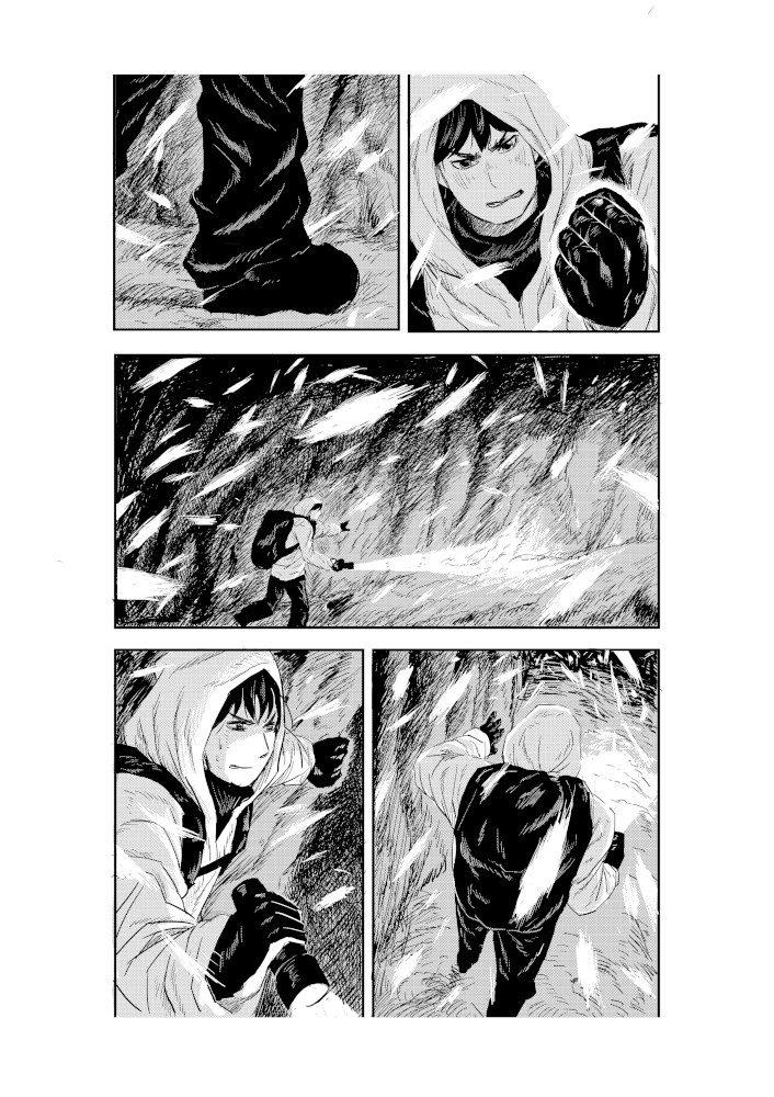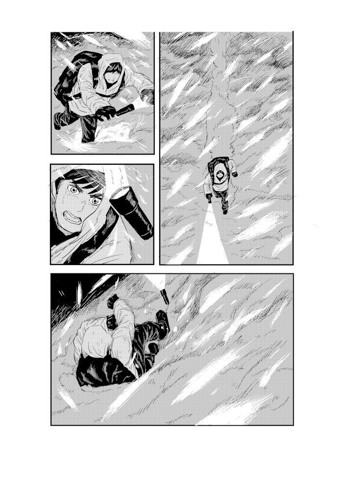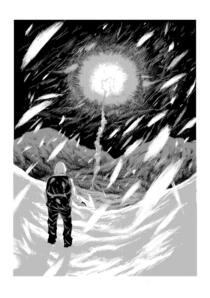 “a sudden realization hit our main character like a bolt of lightning as a big light behind him casts a shadow in front of him”
