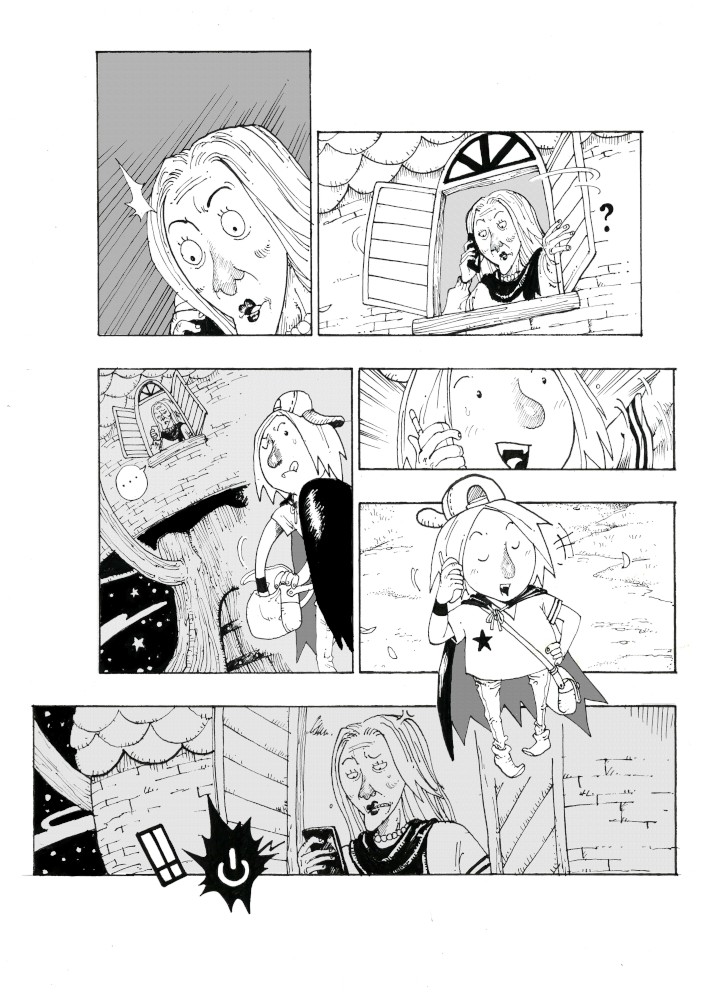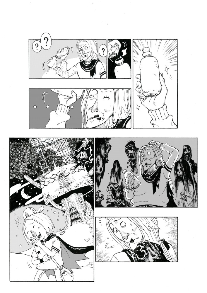 | “When the little vampire gave the ghost-contained bottle to the witch to scare her out.” | |