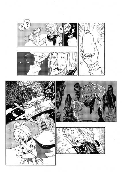 | “When the little vampire gave the ghost-contained bottle to the witch to scare her out.” | |