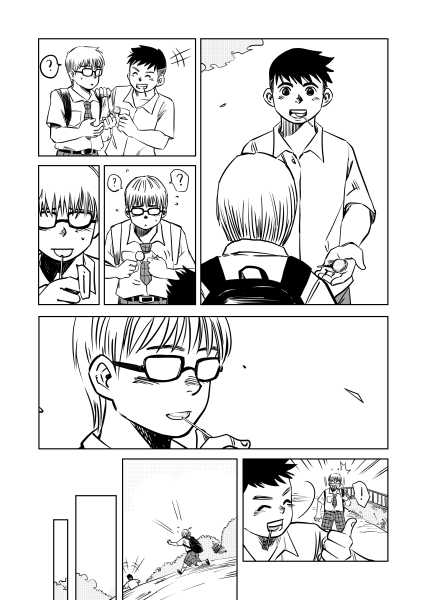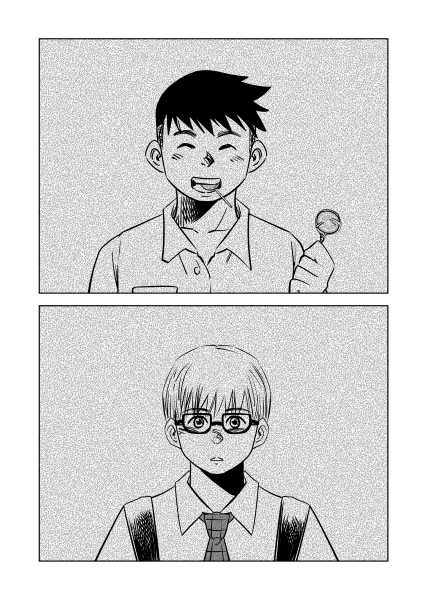 “A boy saw another boy walk sadly so he gave him a candy without thinking anything. He never know that only one candy could mean a lot to another boy. That one candy became a friendship, even they did not see each other for long time but friendship never change.”