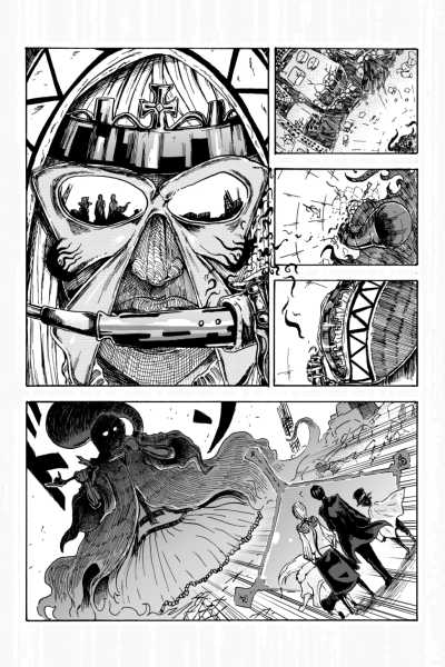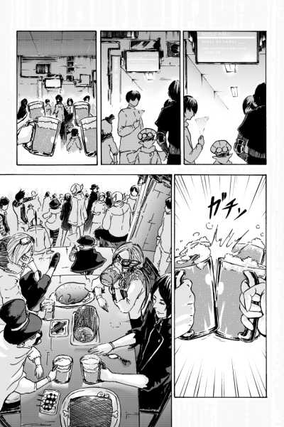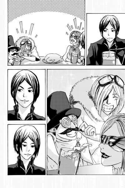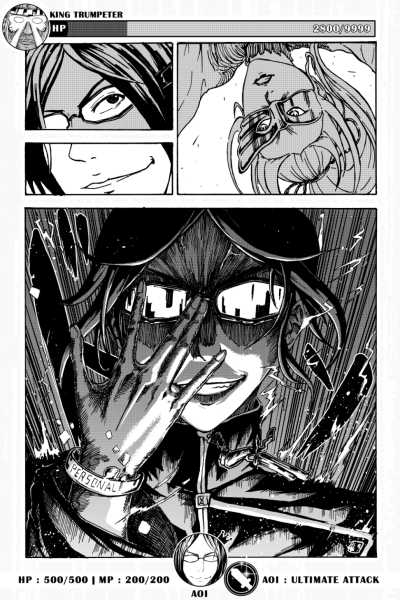 “i use traditional art for virtual world and digital art for the real world and the pattern in the virtual world (the code pattern in the page 1-21) is disappear in the page 22 for the transition, FRIENDSHIP IS LIMITLESS :D”