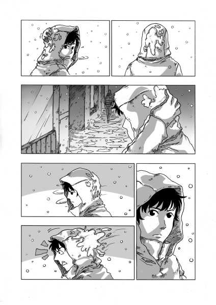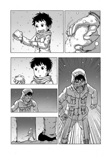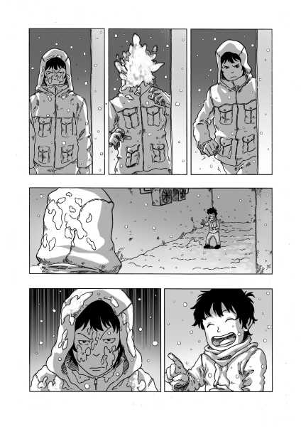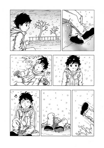 “the boy who just wants to play with someone by looking for someone's attention by throwing a snowball to random people, because no one childrens who want to play with him.”