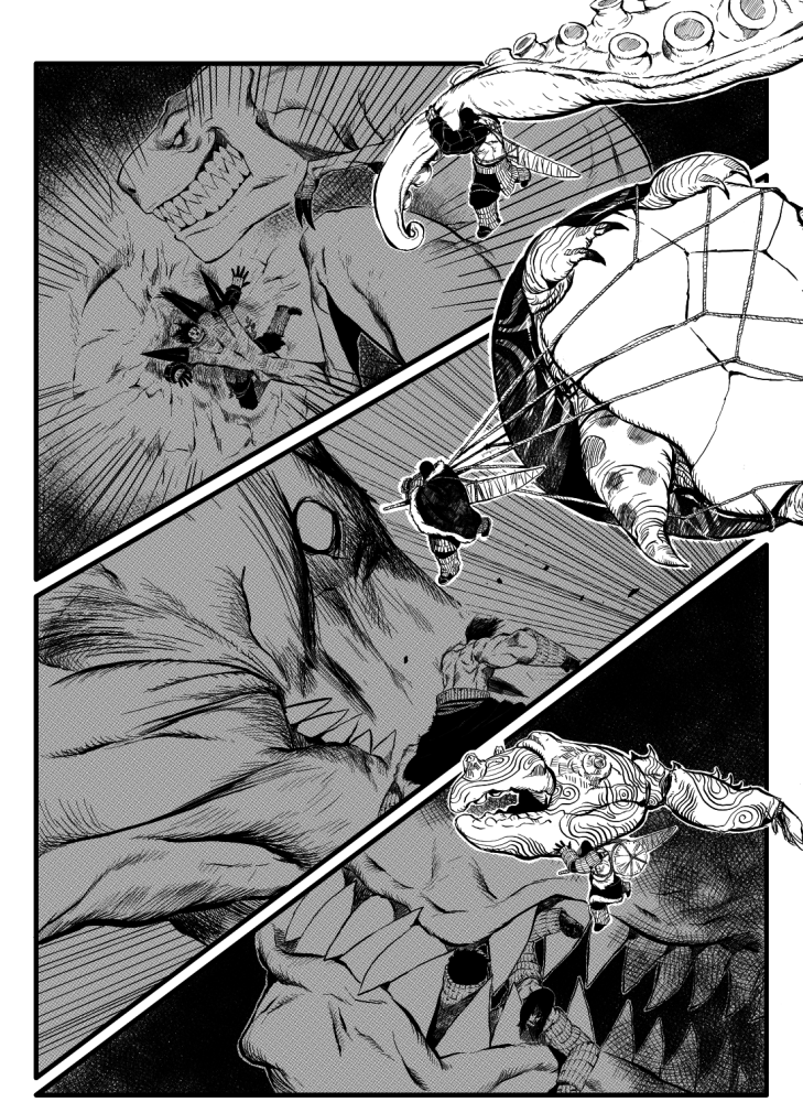 “We are amazed by how well the creator draws and that hyrohiku shows his love of action throughout the piece!However, it took us several readings to fully appreciate the story. Working on the paneling might make it even more engaging to read. We hope him joining the SMA MASTERCLASS will be a great oppotunity for that. Looking forward to working with him ;)”
