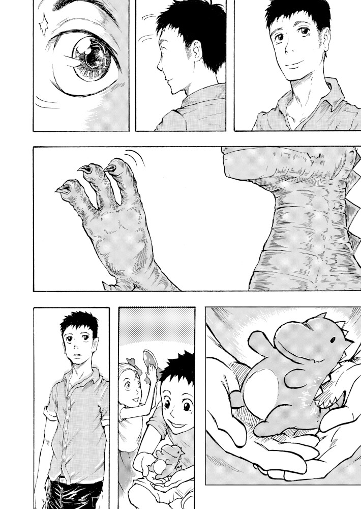| “I personally really enjoyed "Hero Box". It combines two contrasting perspectives - "Child's view" and "Grown-up's view" to great emotional effect.The rhythm here is well executed - the story gradually builds momentum, then towards the end it cuts straight into the moment of wonder, which made me grin with joy. It is one of the simplest and the most effective techniques of manga story telling executed brilliantly. Thank you REDJET.” | |