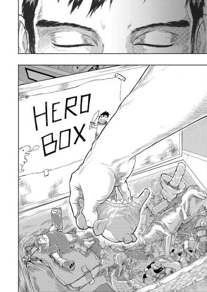 | “I personally really enjoyed "Hero Box". It combines two contrasting perspectives - "Child's view" and "Grown-up's view" to great emotional effect.The rhythm here is well executed - the story gradually builds momentum, then towards the end it cuts straight into the moment of wonder, which made me grin with joy. It is one of the simplest and the most effective techniques of manga story telling executed brilliantly. Thank you REDJET.” | |