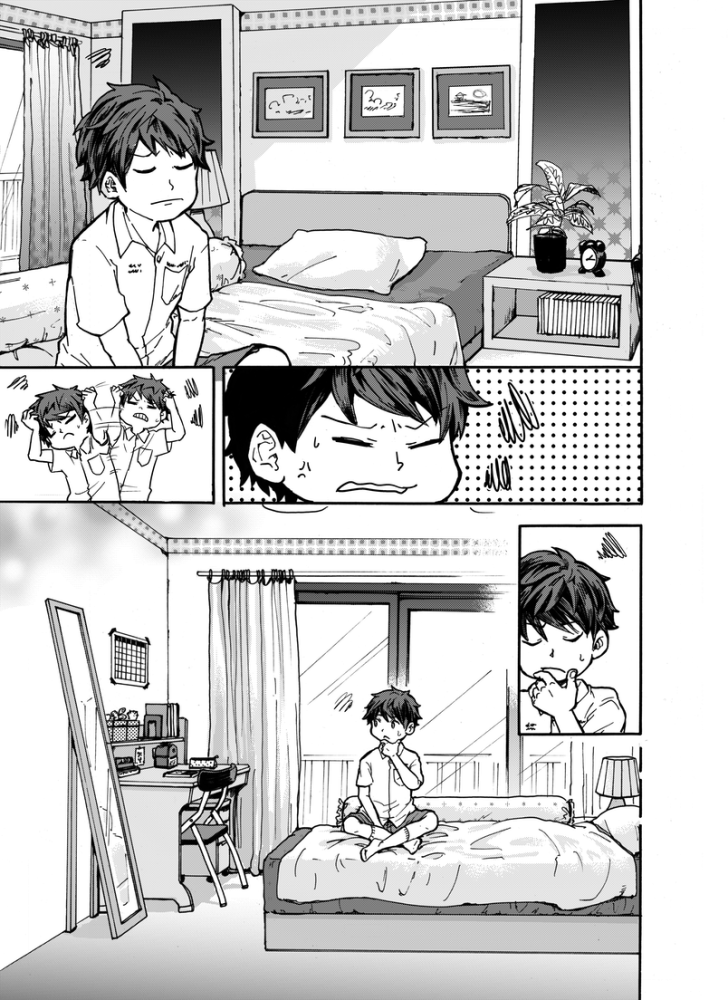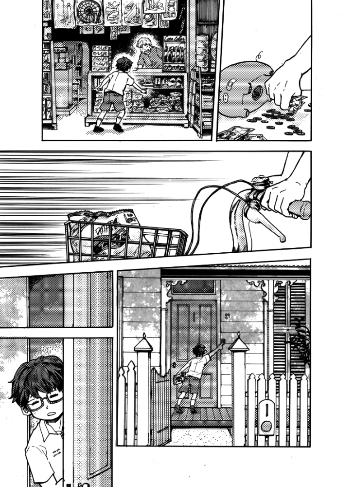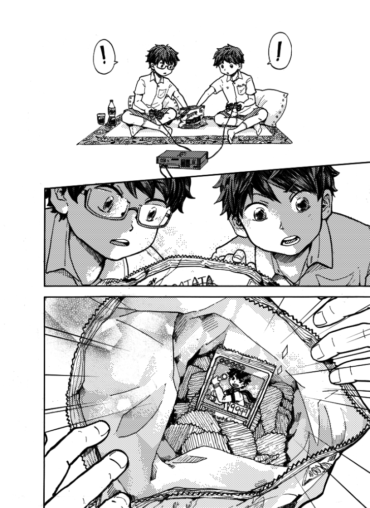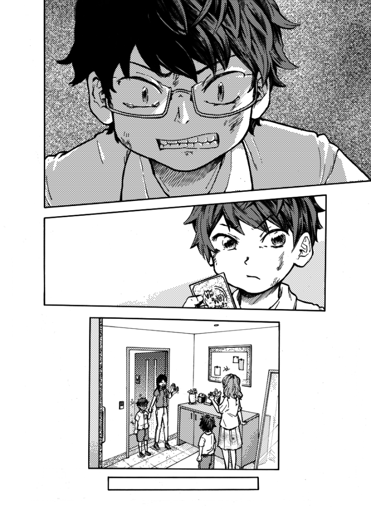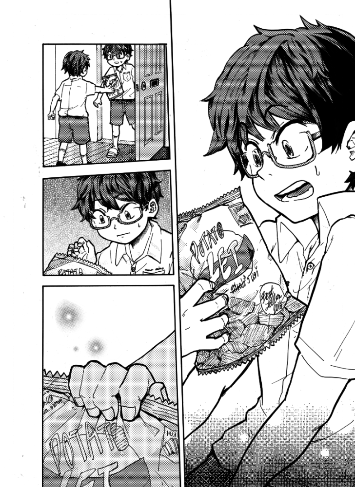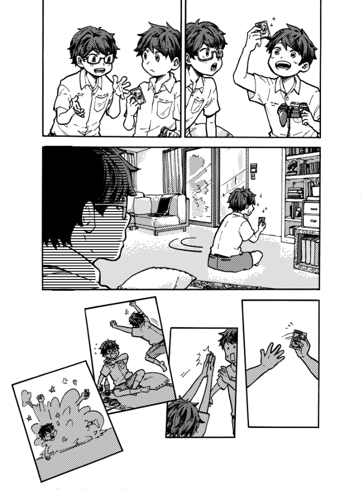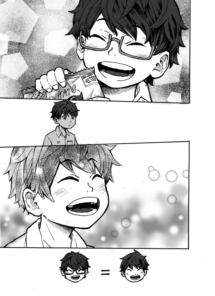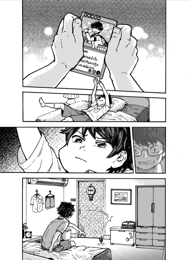 | “When the boy notices why he is feeling so irritated eventhough he got the toy card.” | |