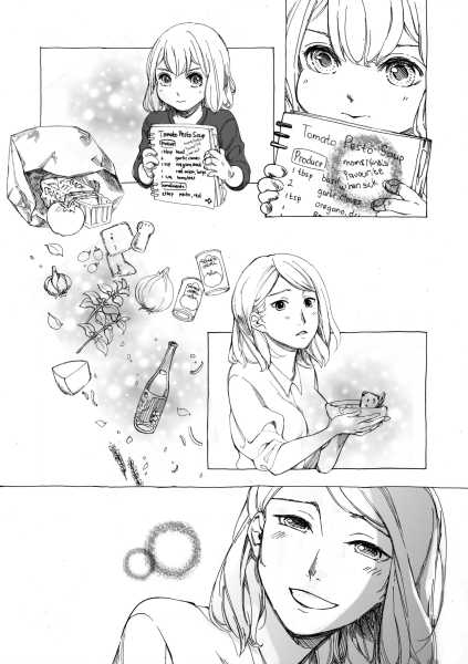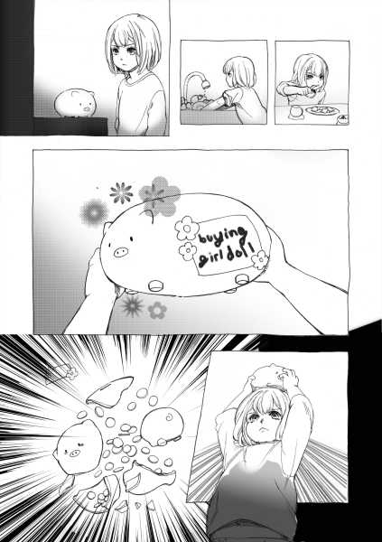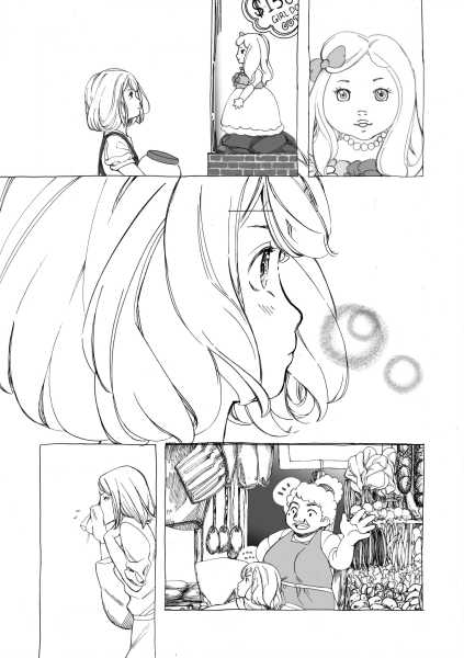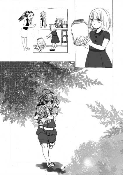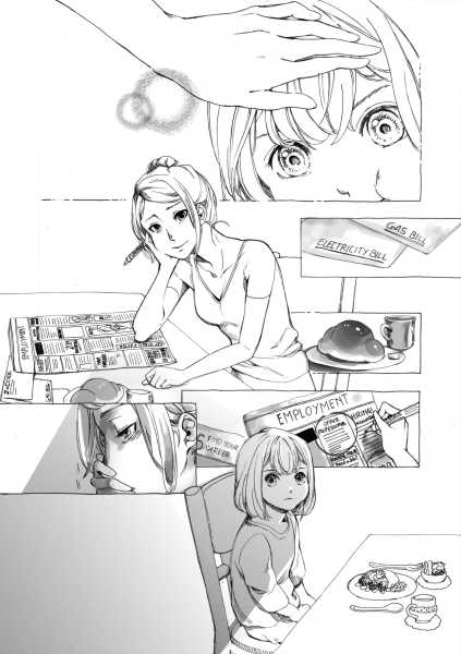 | “The grumpy girl. The challenge of drawing her grumpy face in every single panel, yet being able to send the expression she feels through action and gestures. Hope I've done well.” | |
