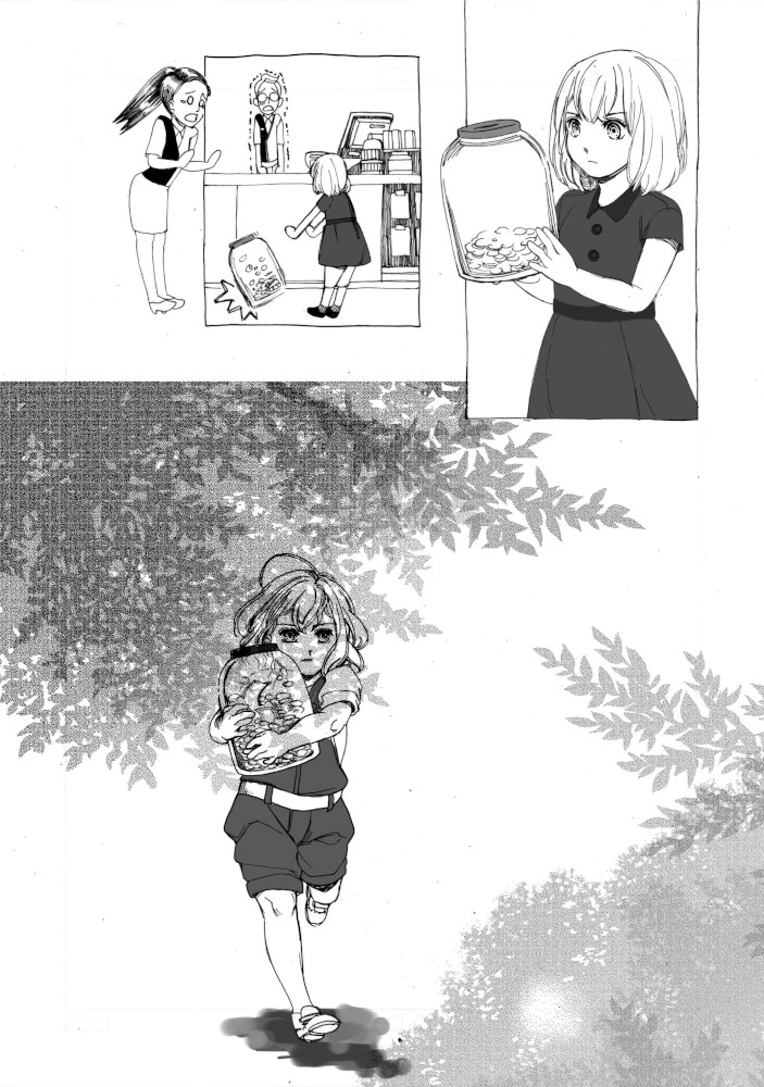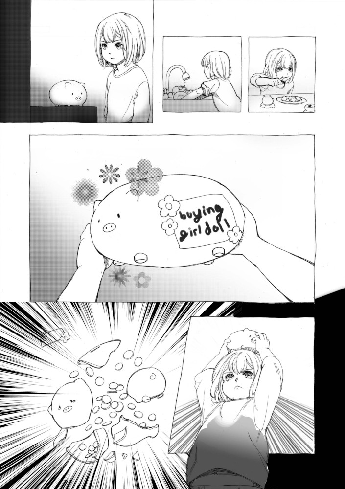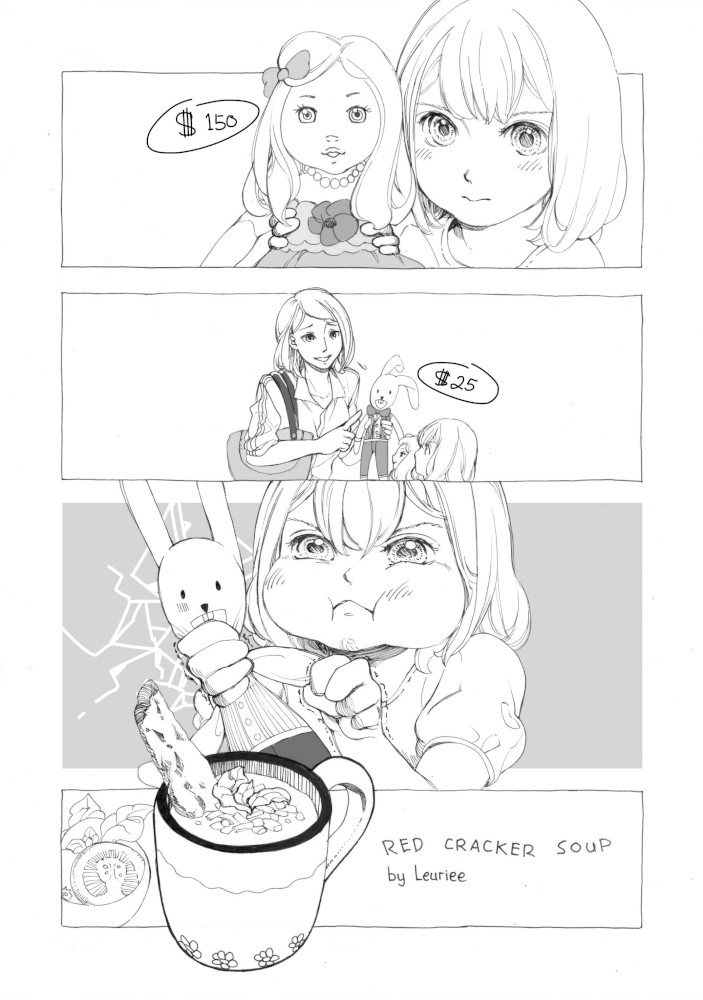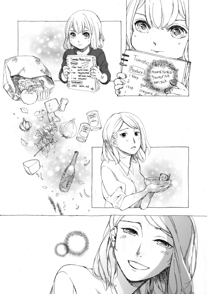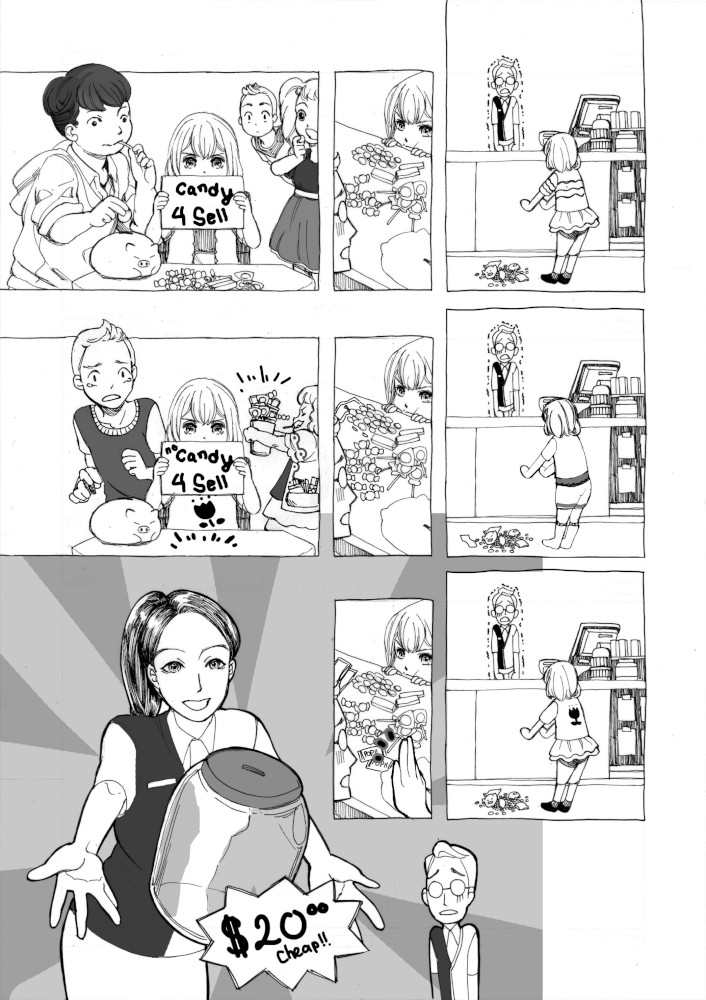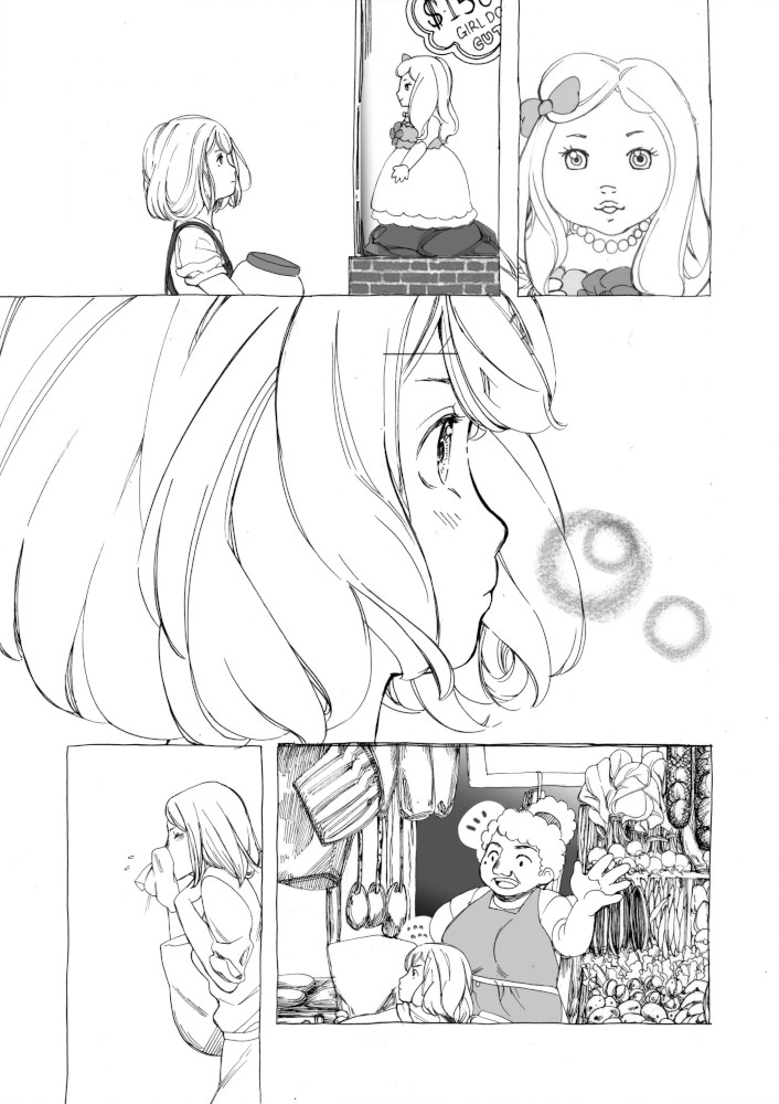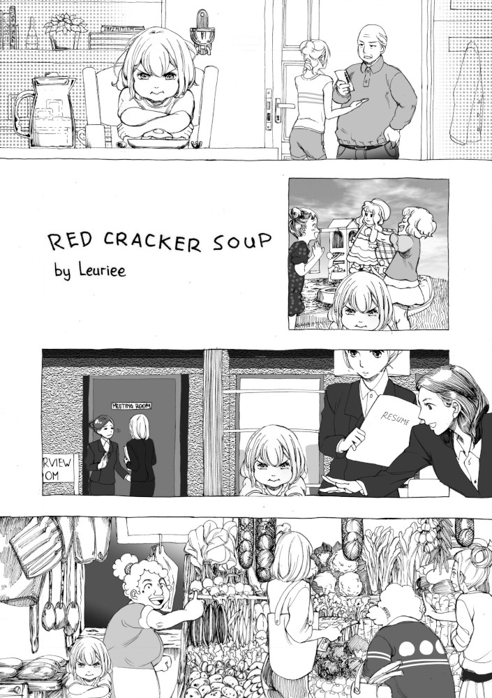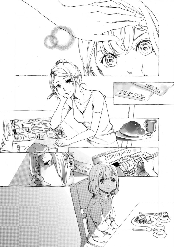 | “The grumpy girl. The challenge of drawing her grumpy face in every single panel, yet being able to send the expression she feels through action and gestures. Hope I've done well.” | |