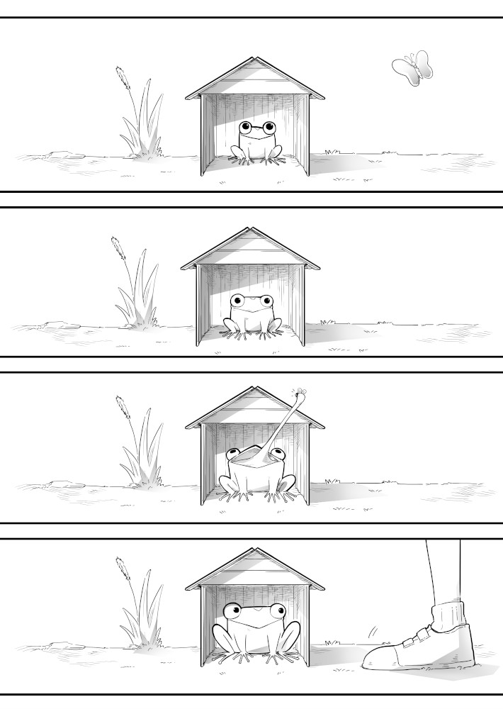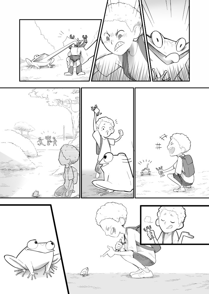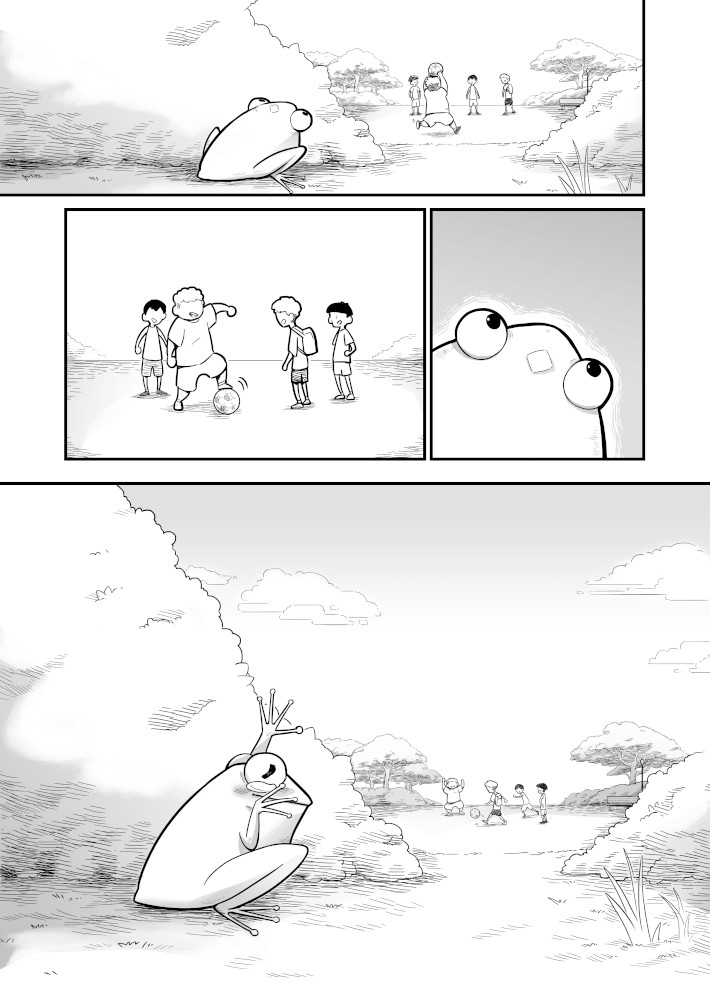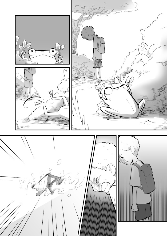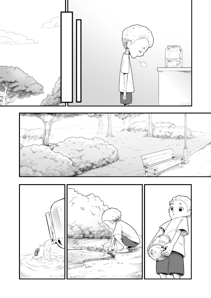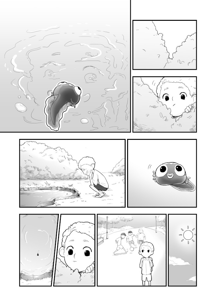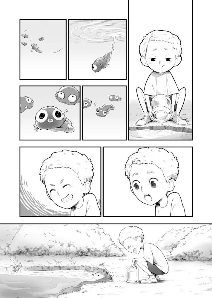 | “The story really focuses on two protagonists: the boy and the tadpole. The tadpole shows a variety of reactions; some well exaggerated and very sympathetic, too. The characters here are very well established. A good read.” | |